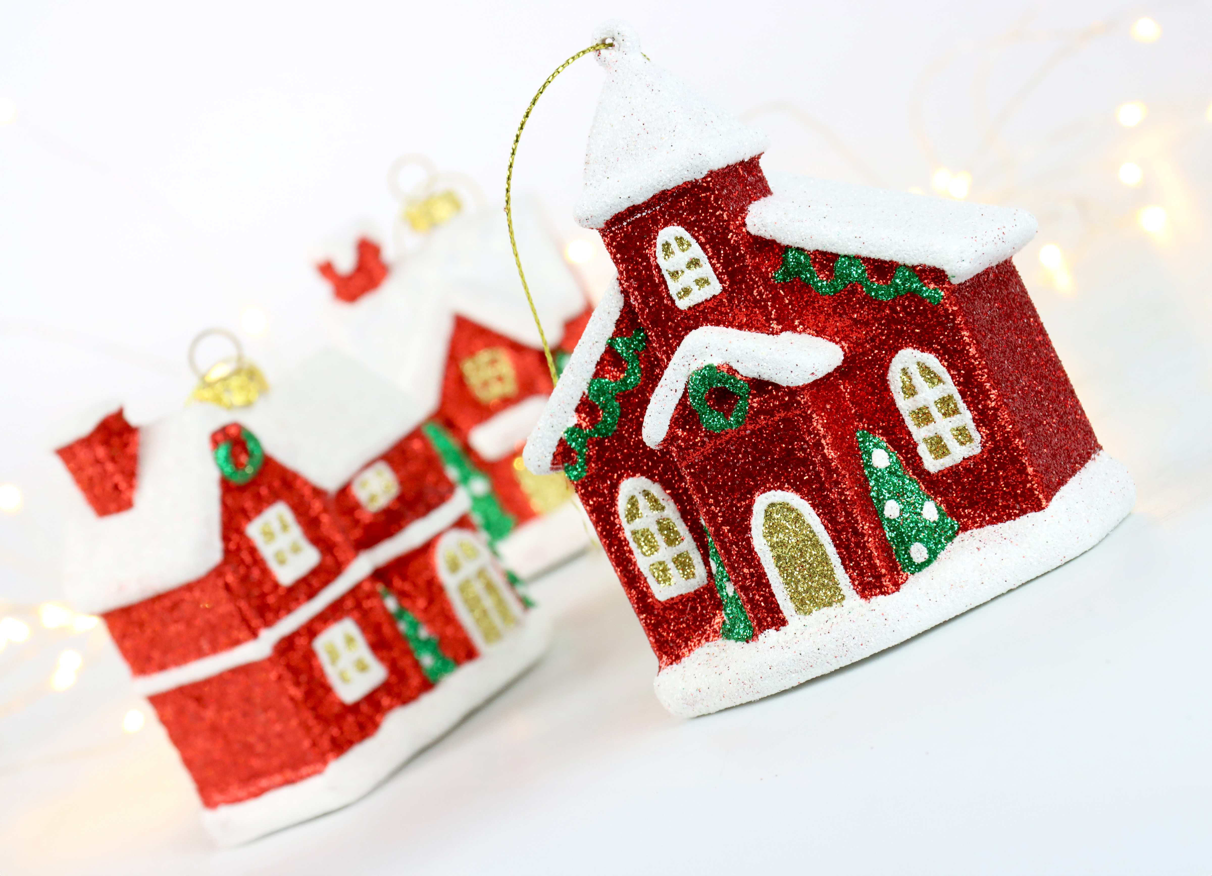 Keywords : Pendentifs décoratifs "Maisons", décoration de Noël, set de 3, plastique de haute qualité, paillettes, idée de cadeau, habitat et lifestyle, Noël, commerce de détail stationnaire.