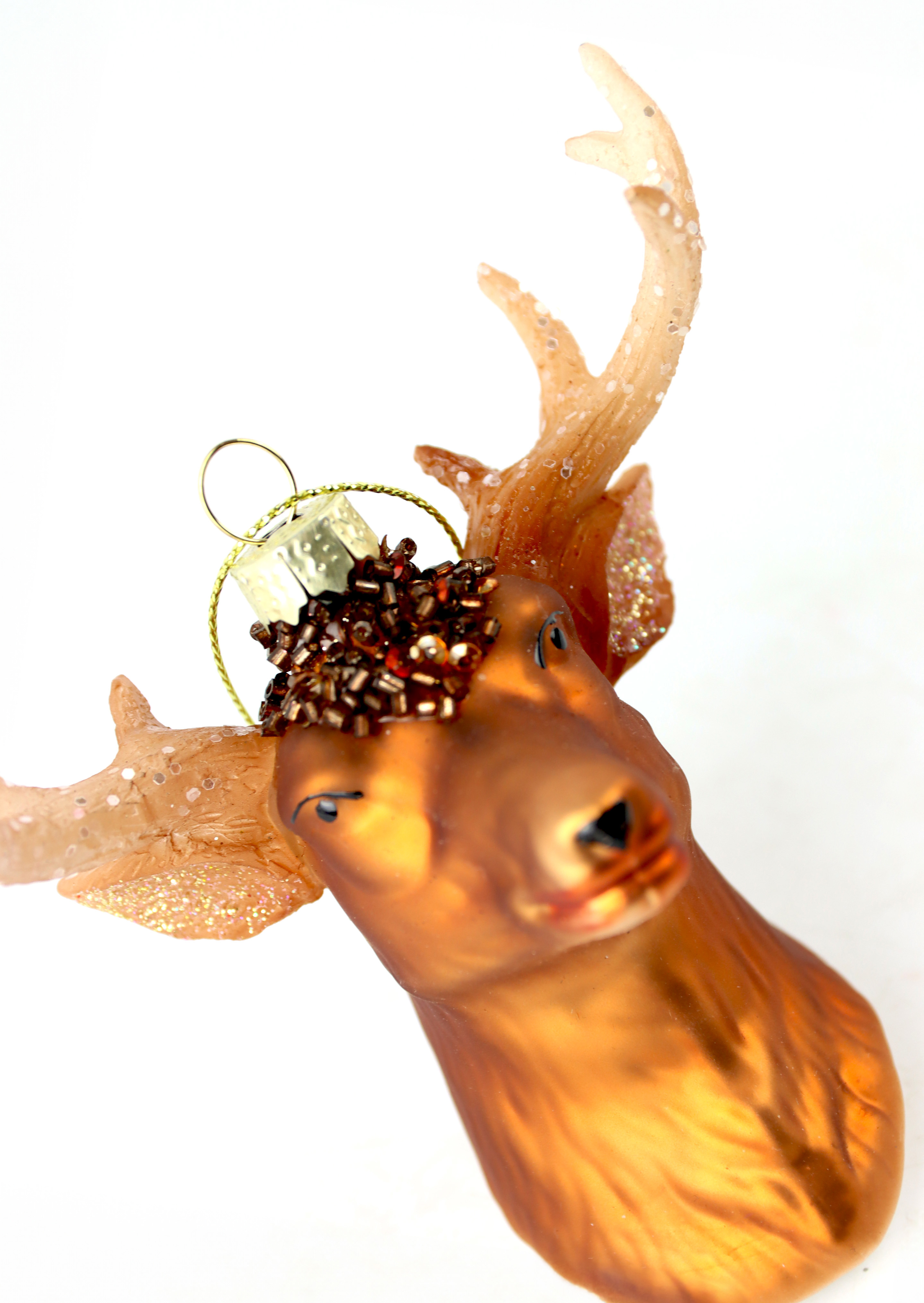 FR**Description du produit : Décorations en verre "Tête de cerf" en set de 2 - L'élégance du verre pour une ambiance festive**.