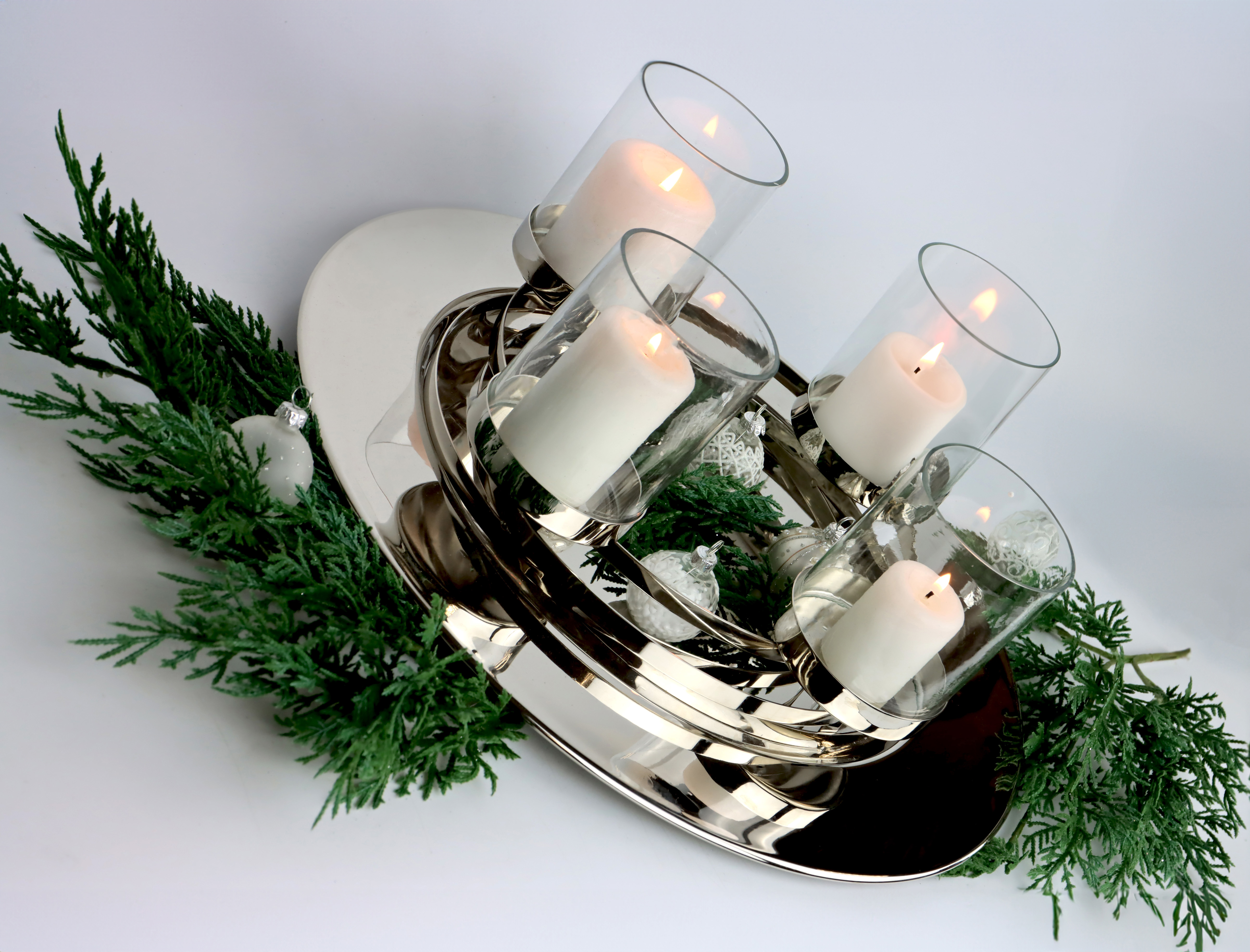 Décoration de Noël, coupelle de chandelier de Noël, coupelle de chandelier "Empire", accessoires d'intérieur de qualité, bougeoir en argent, porte-bougie à chauffe-plat, produit Lifestlye, commerce de détail, coupelle de chandelier en argent, coupelle de chandelier durable en acier inoxydable, coupelle de chandelier en nickel plaqué.