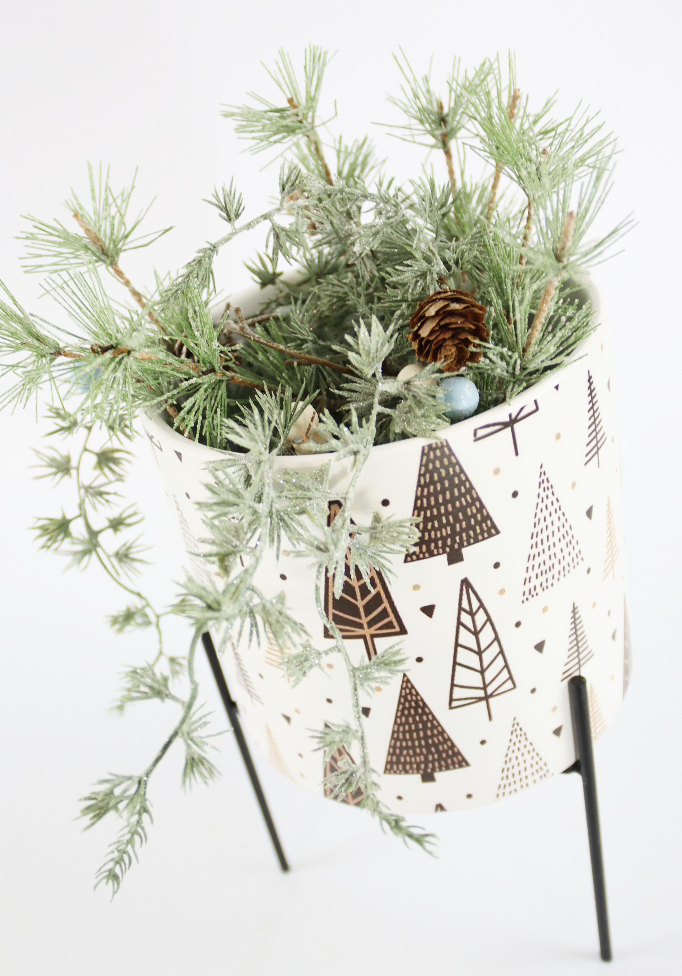 Avec une hauteur d'environ 12 cm, le cache-pot est à la fois compact et suffisamment présent pour être utilisé seul ou en combinaison avec d'autres éléments de décoration. Le support pratique assure non seulement la stabilité du cache-pot, mais le met aussi visuellement en valeur et lui confère une élégance supplémentaire. Notre cache-pot "BOSCO" est polyvalent : Utilisez-le comme plateforme élégante pour les petites plantes ou utilisez-le comme soucoupe du plus bel effet dans votre décoration de Noël.