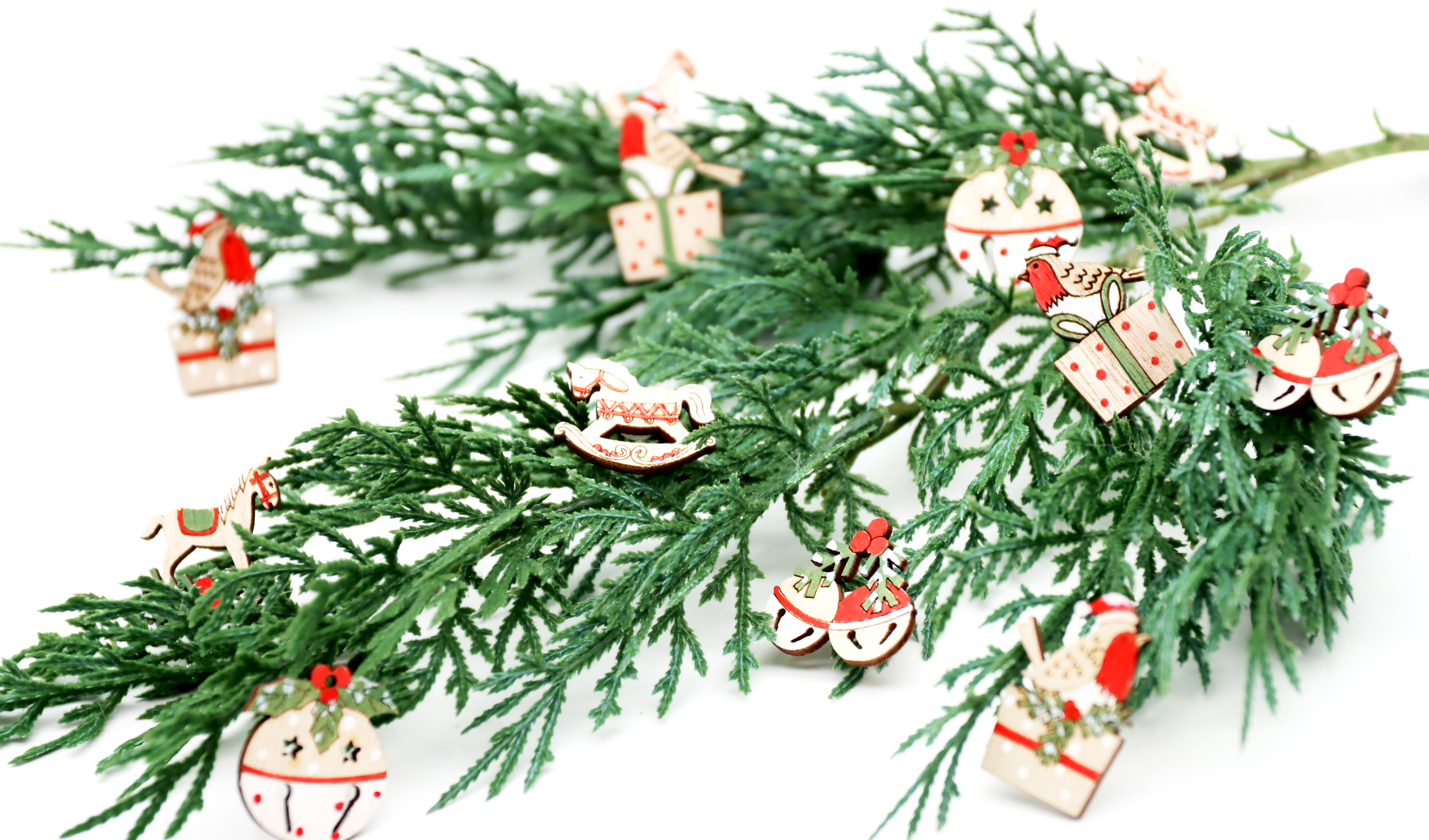 Apportez la magie de Noël dans votre magasin de détail avec nos 72 décorations en bois à disperser "Noel". Cet ensemble exquis est un must pour tout détaillant stationnaire actif dans le domaine de l'habitat et du style de vie qui souhaite mettre en scène ses produits avec style pendant la période de Noël. Avec une taille d'environ 3,8 cm par pièce, ces décorations à saupoudrer sont idéales pour donner un air de fête aux tables, aux étagères ou aux décorations de vitrines et pour attirer l'attention de vos clients.
