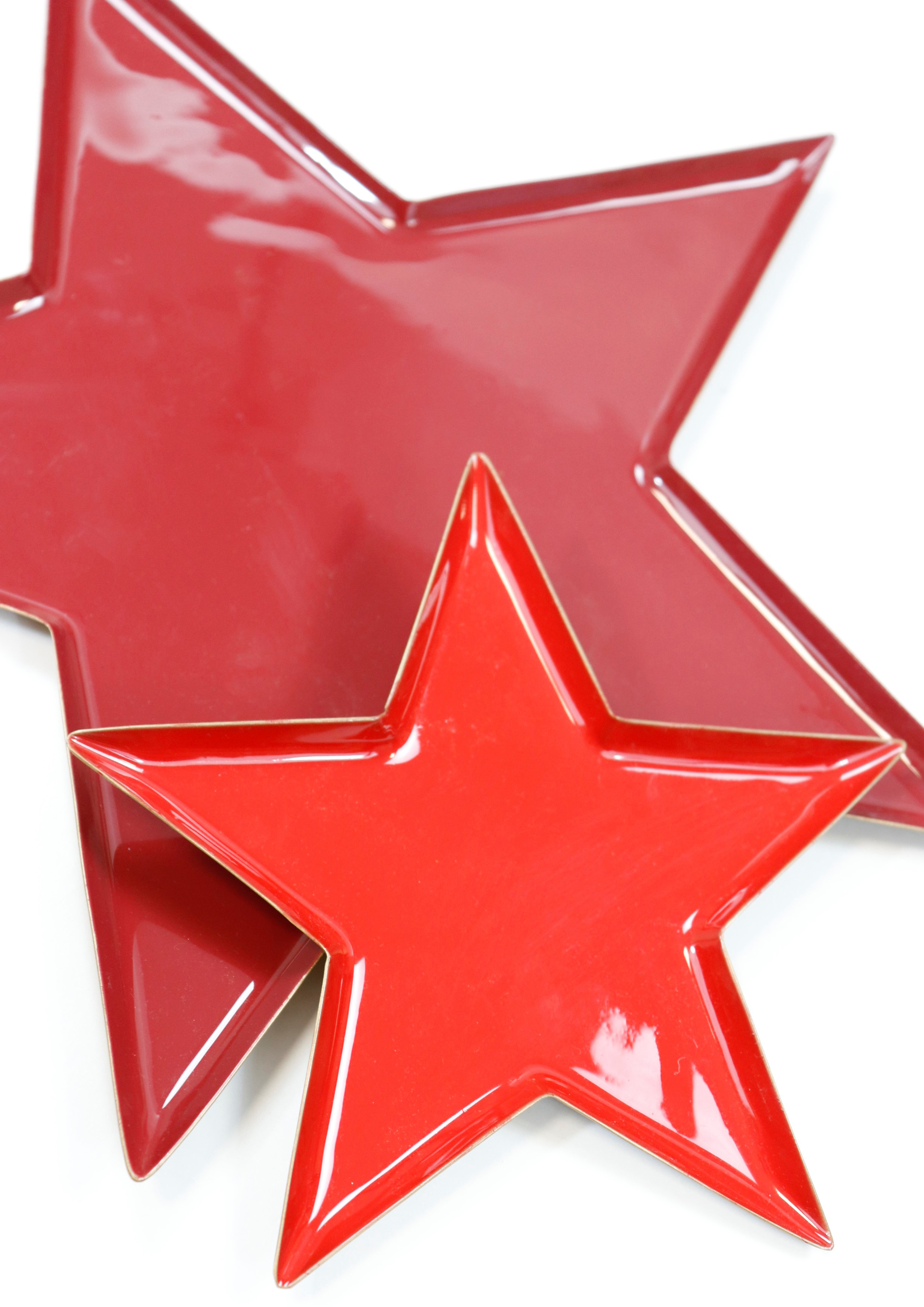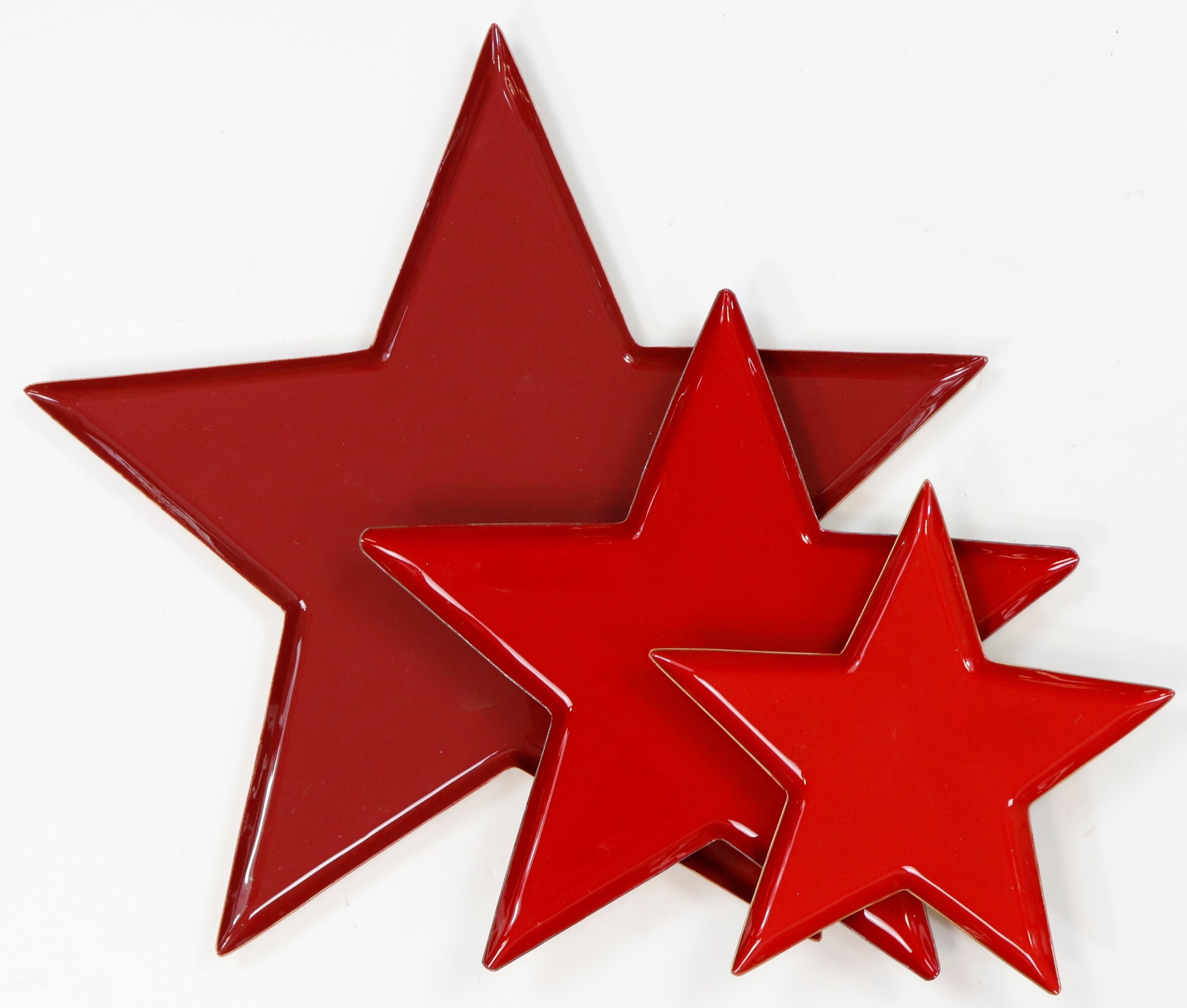 - Un ensemble de trois plateaux en forme d'étoile au design rouge, dans les tailles 20, 28 et 38cm.
