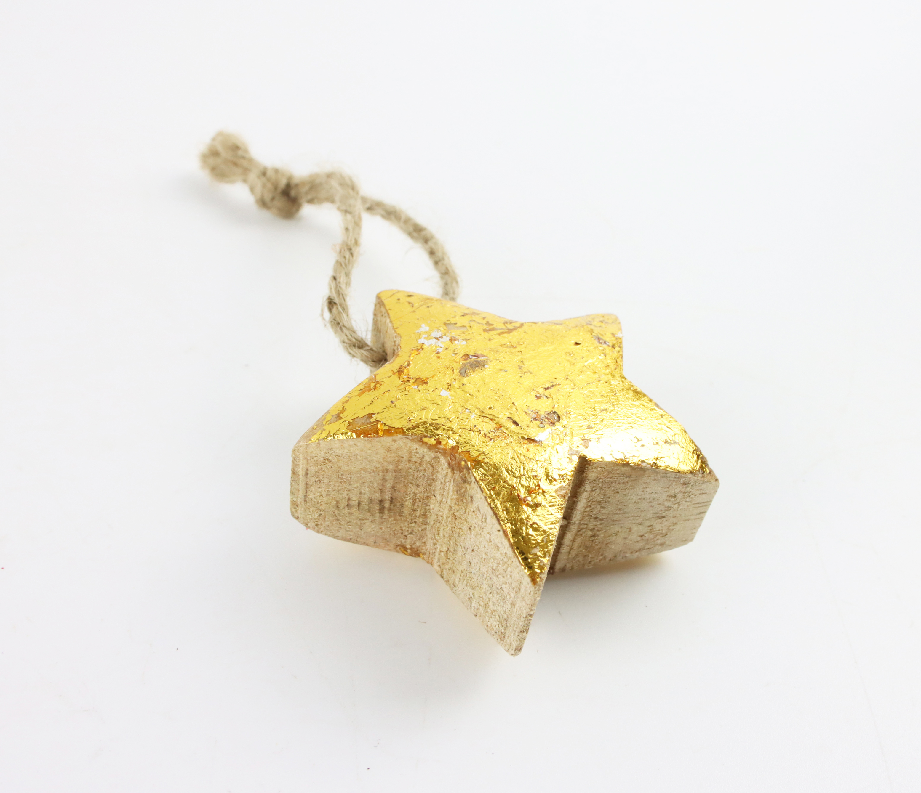 - 61 pendentifs en forme d'étoile dorée en bois de manguier de haute qualité