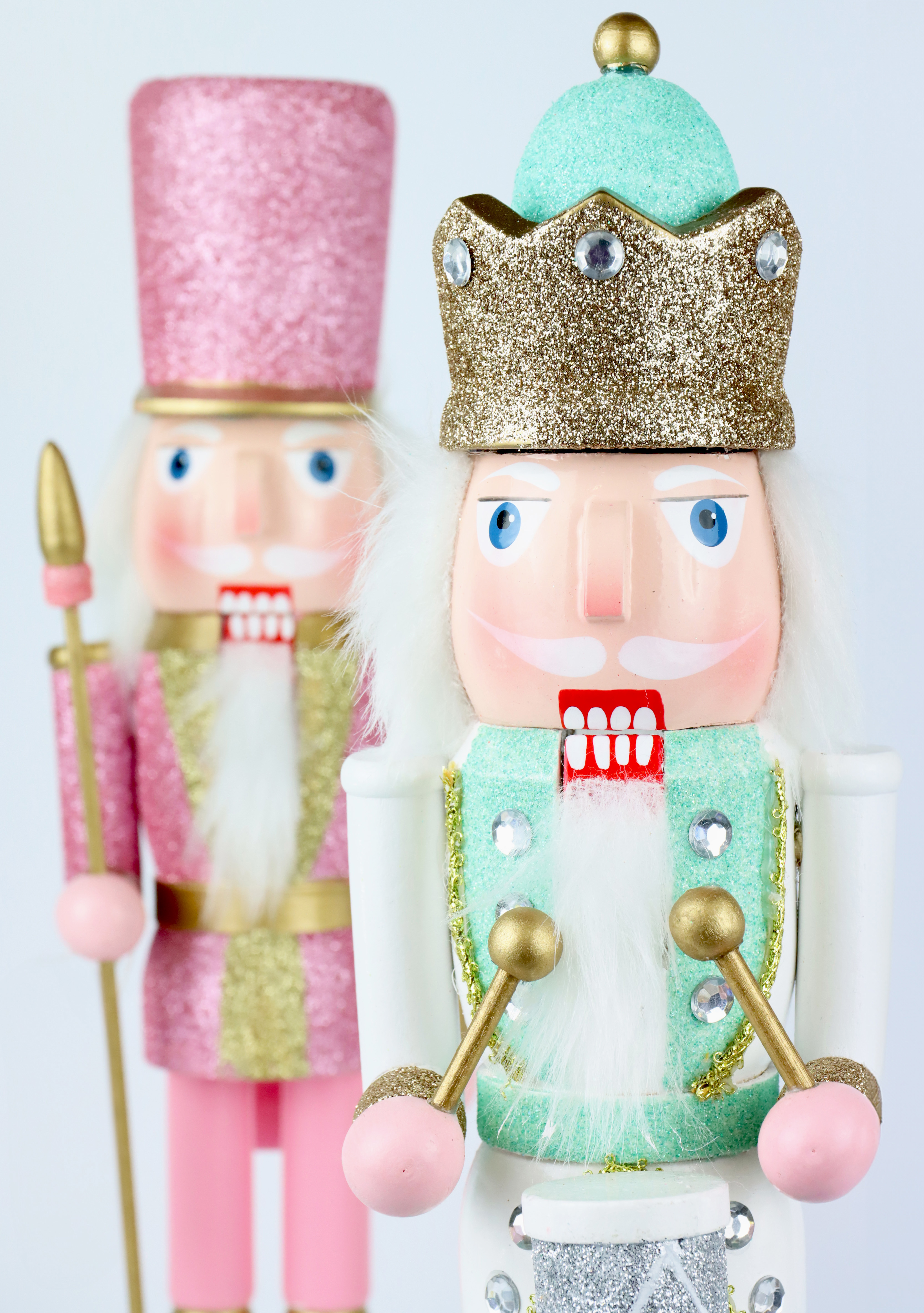 Décoration de Noël, Casse-noisette en bois, Casse-noisette déco, Casse-noisette de bonne qualité, Casse-noisette "Holly Jolly", ambiance festive, couleurs candy, décoration intérieure, cadeau de Noël, qualité artisanale.