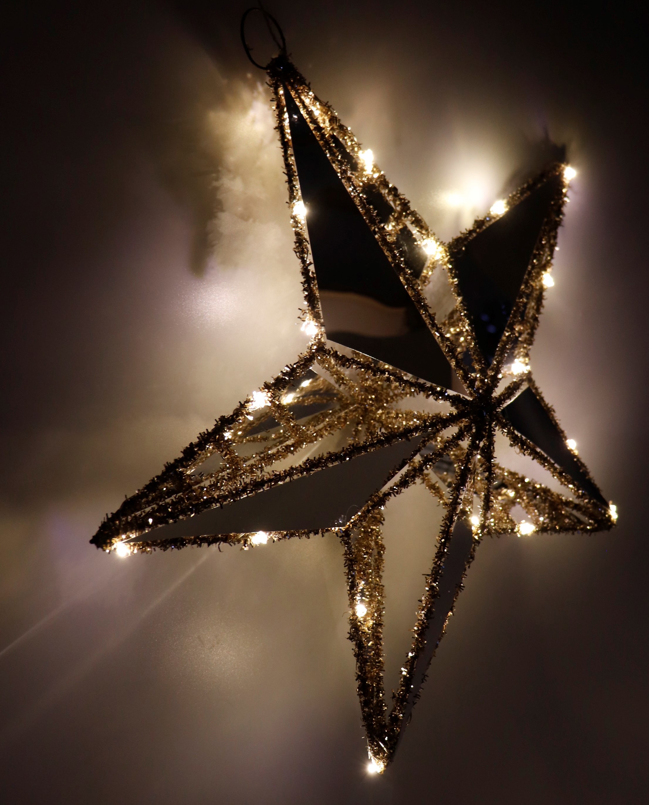 Grâce à sa technologie LED innovante, l'étoile lumineuse "Reflection" diffuse une agréable lumière blanche chaude qui crée une atmosphère enchanteresse. Avec un diamètre d'environ 41 cm, cette étoile est suffisamment grande pour servir d'accroche centrale dans une vitrine ou sur une surface décorative. Sa conception à partir de matériaux de haute qualité tels que le métal, le plastique et le polyester lui assure longévité et robustesse, tandis que l'effet miroir combiné à l'élégant bord doré confère à chaque pièce une touche de luxe.