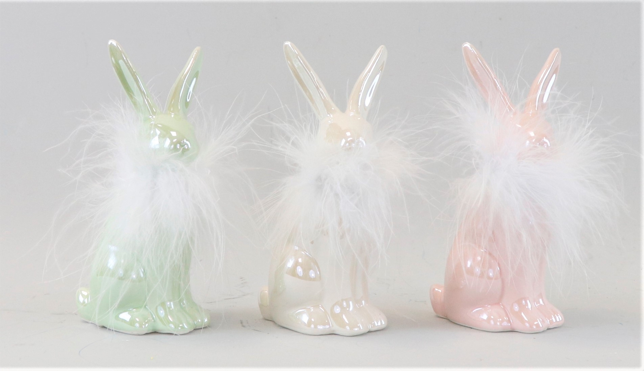 FR**DÉCORATION DE PÂQUES PLEINE DE CHARME : LE SET DE LAPIN EN CÉRAMIQUE "SHINE" EN PACK DE 3**.