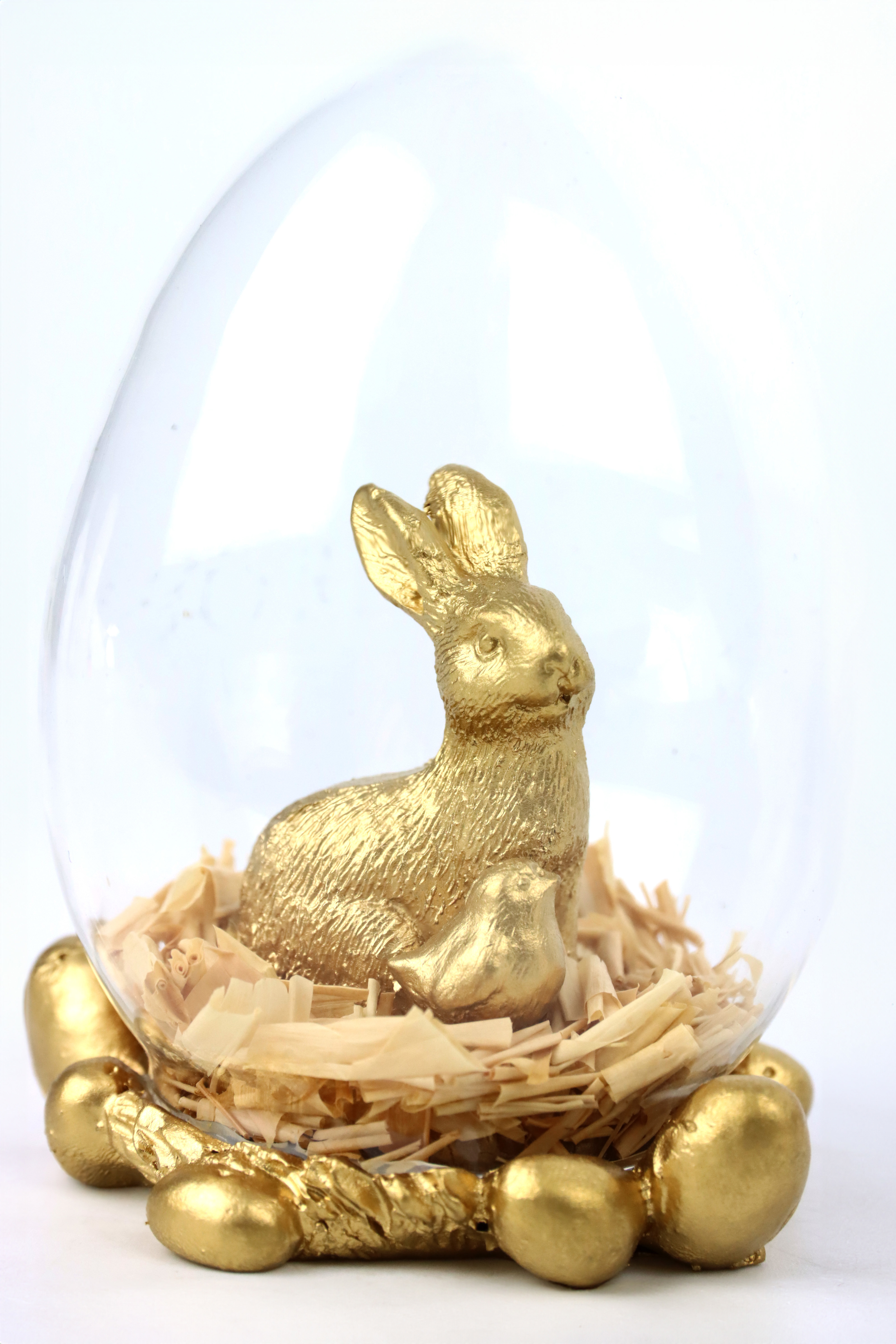- Le set se compose de trois œufs en verre avec lapin doré en polyrésine