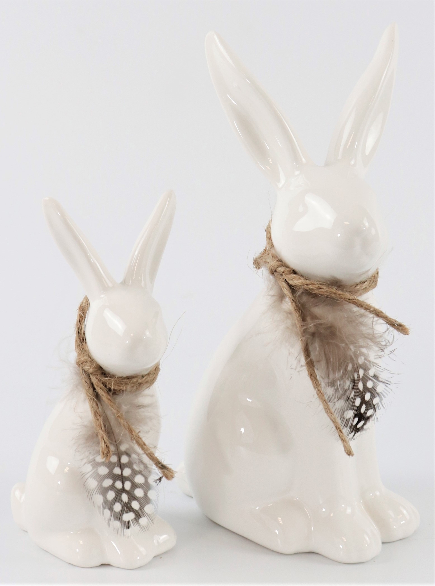 FR**Description du produit : COUPLE DE LAPINS "FEATHERS" S/2 - Décoration printanière de Pâques en porcelaine**