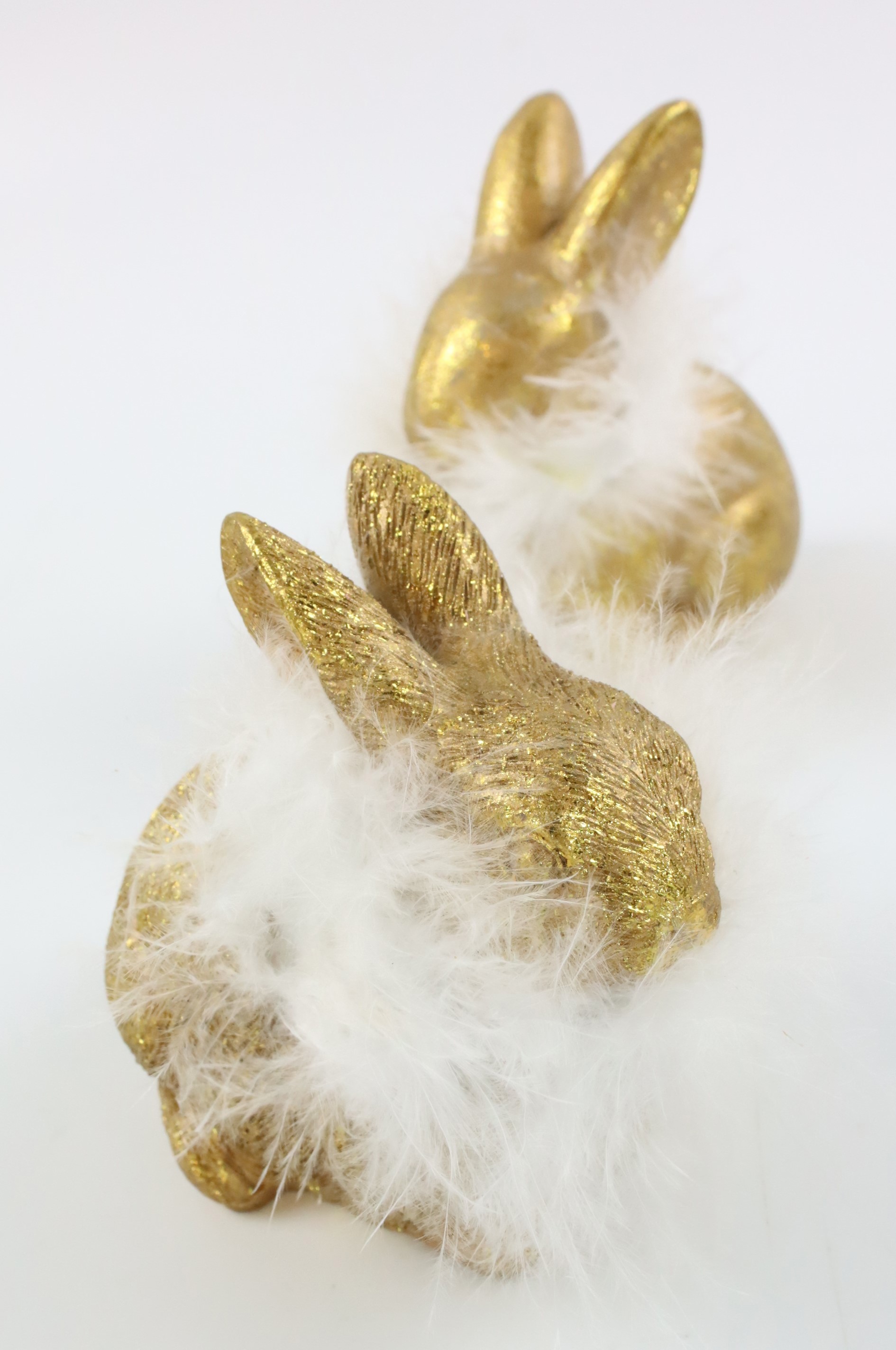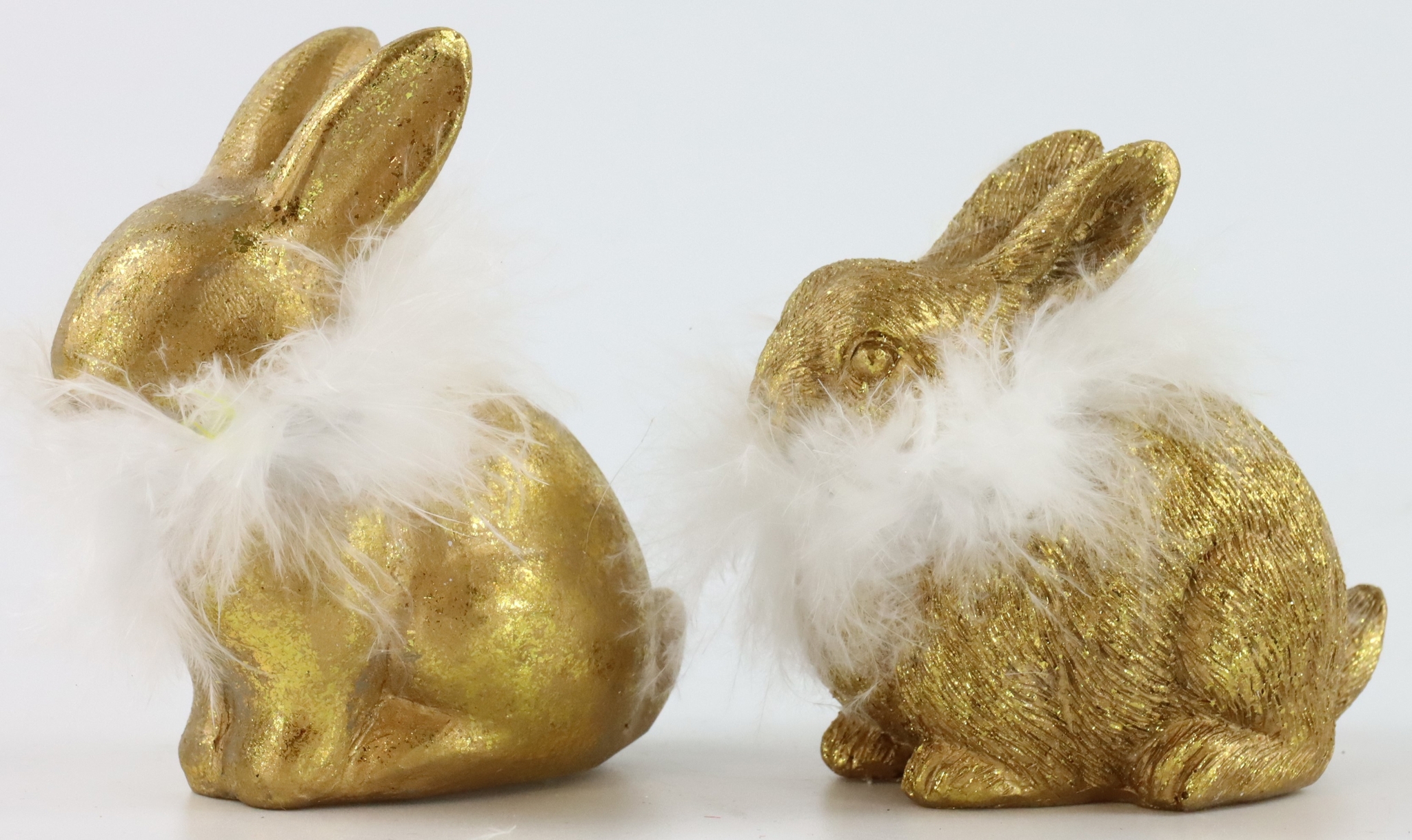 - Set de deux lapins dorés en polyrésine (tailles : env. 8 cm et 10 cm)