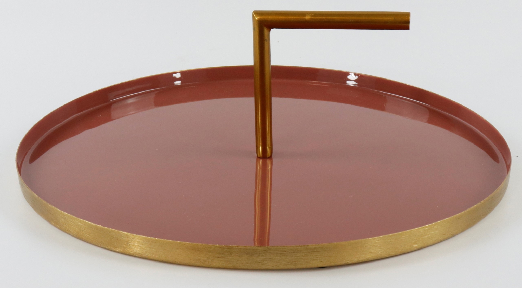 Scoprite l'aggiunta perfetta all'ambiente elegante del vostro negozio con il nostro squisito vassoio di metallo "Deluxe". Con un diametro di circa 35 cm, questo vassoio è ideale per mettere in mostra i vostri elementi decorativi o per supportare il servizio di alta qualità nel vostro caffè o bistrot. Il vassoio "Deluxe" colpisce per la sua finitura metallica di alta qualità in un elegante colore marrone, che trasmette calore ed eleganza senza tempo.