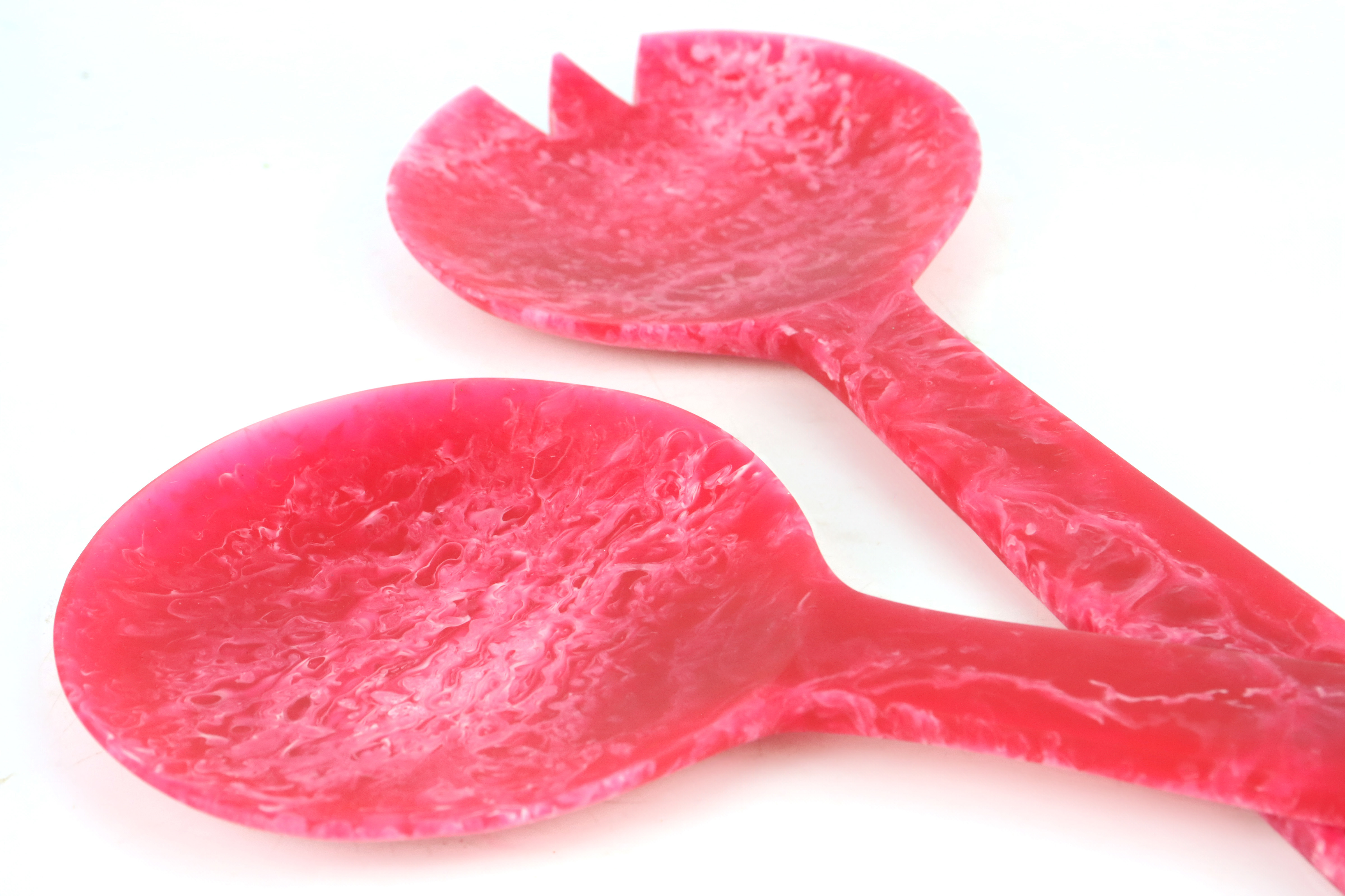 I porta-insalata "Alabaster" combinano funzionalità e design moderno. La superficie liscia e il design ergonomico fanno sì che le posate stiano comodamente in mano, rendendole un accessorio indispensabile per la tavola. Il colore rosso intenso dell'alabastro è accattivante e crea un elegante contrasto con le verdure a foglia verde, i pomodori succosi e i cetrioli croccanti: perfetto per i mesi primaverili ed estivi, quando le insalate vengono gustate come piatto principale rinfrescante.