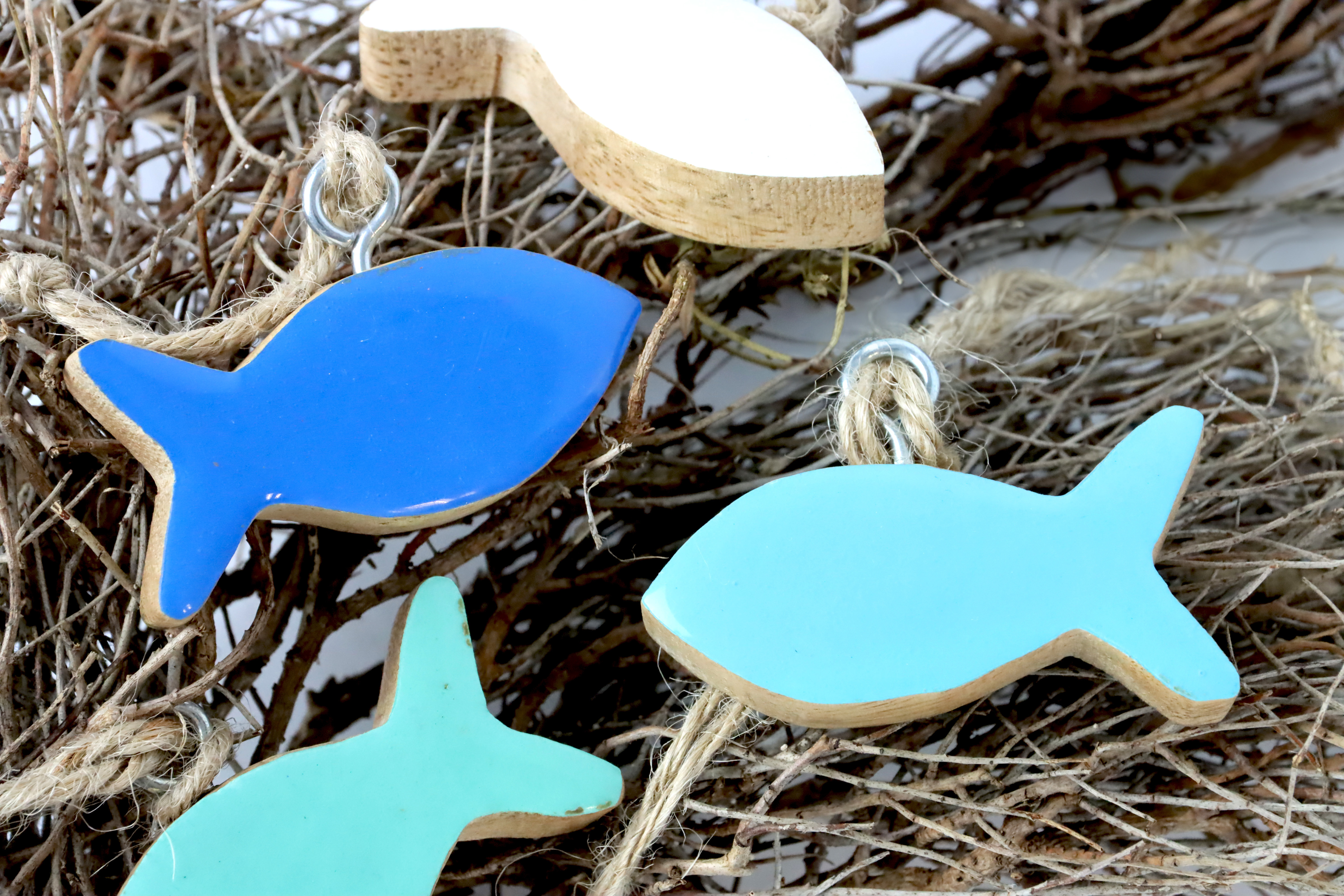 - Set da appendere in legno da 41 pezzi, fatto a mano, "Pesce".