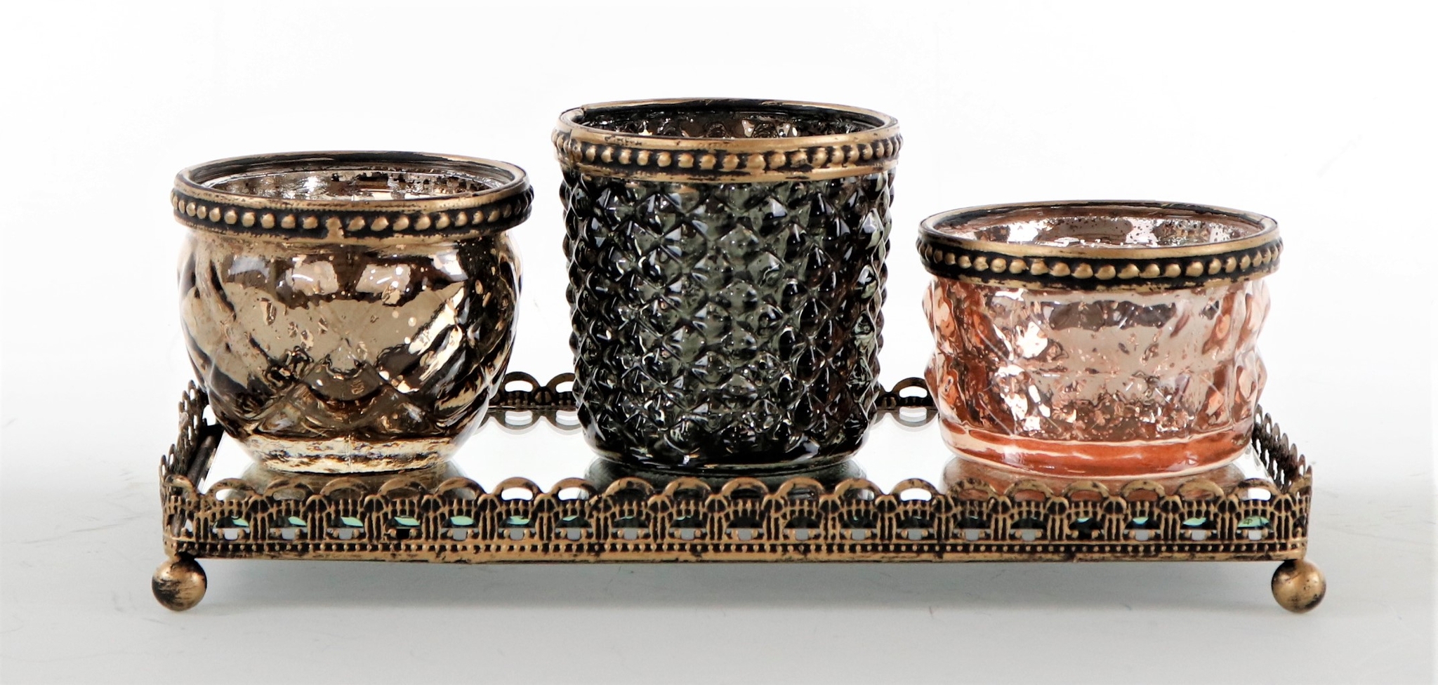 • Misura: Tablett: 21x10,5x2,5cm; Windlichter: ø6,5x6,5cm;