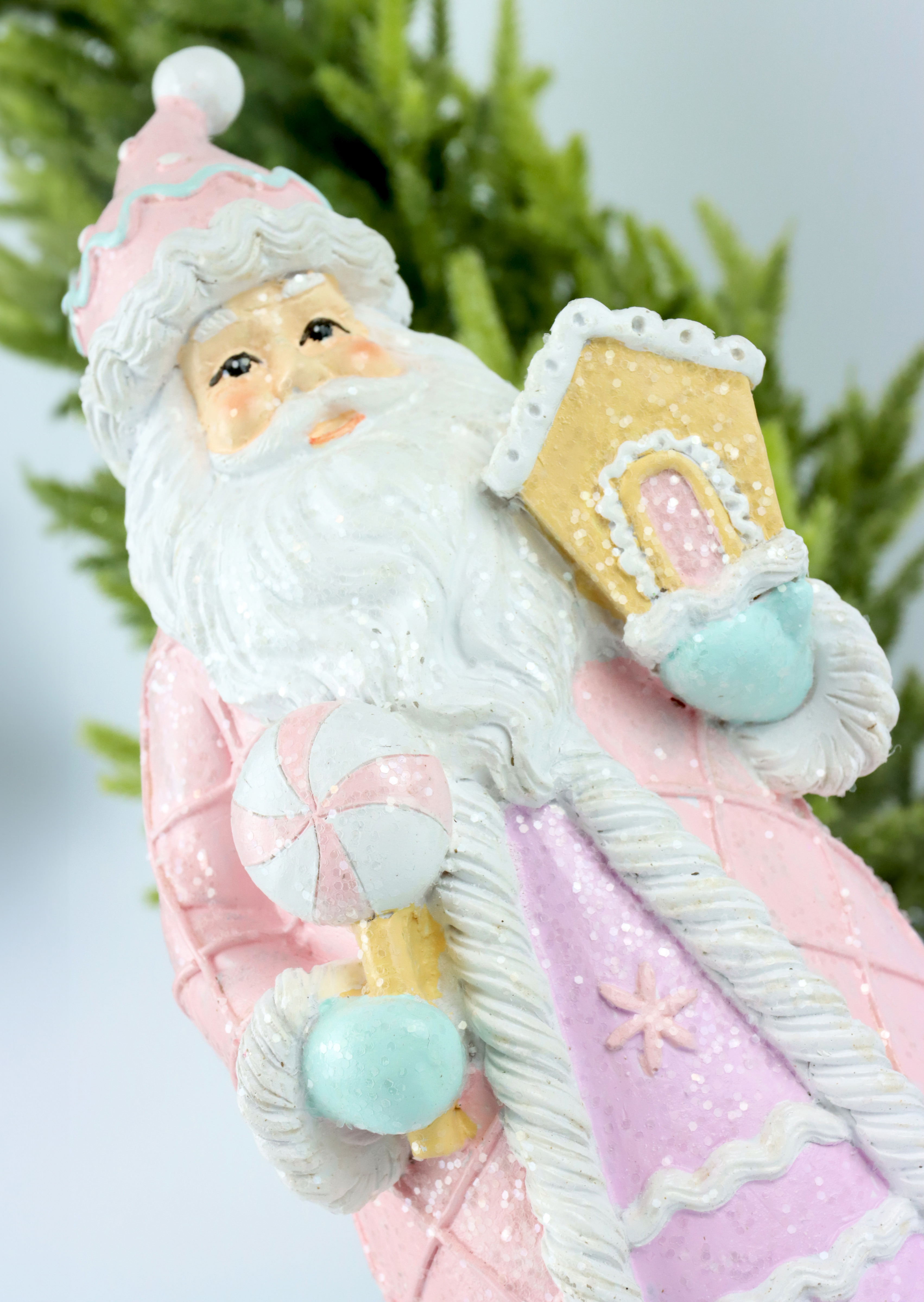 I Babbi Natale "Candy Xmas" sono un delizioso set di 2 figure che daranno vita a qualsiasi decorazione natalizia. Il colore pastello - un mix rinfrescante di turchese e rosa - imita la dolcezza dei bastoncini di zucchero e conferisce a queste statuine un aspetto unico e accattivante.