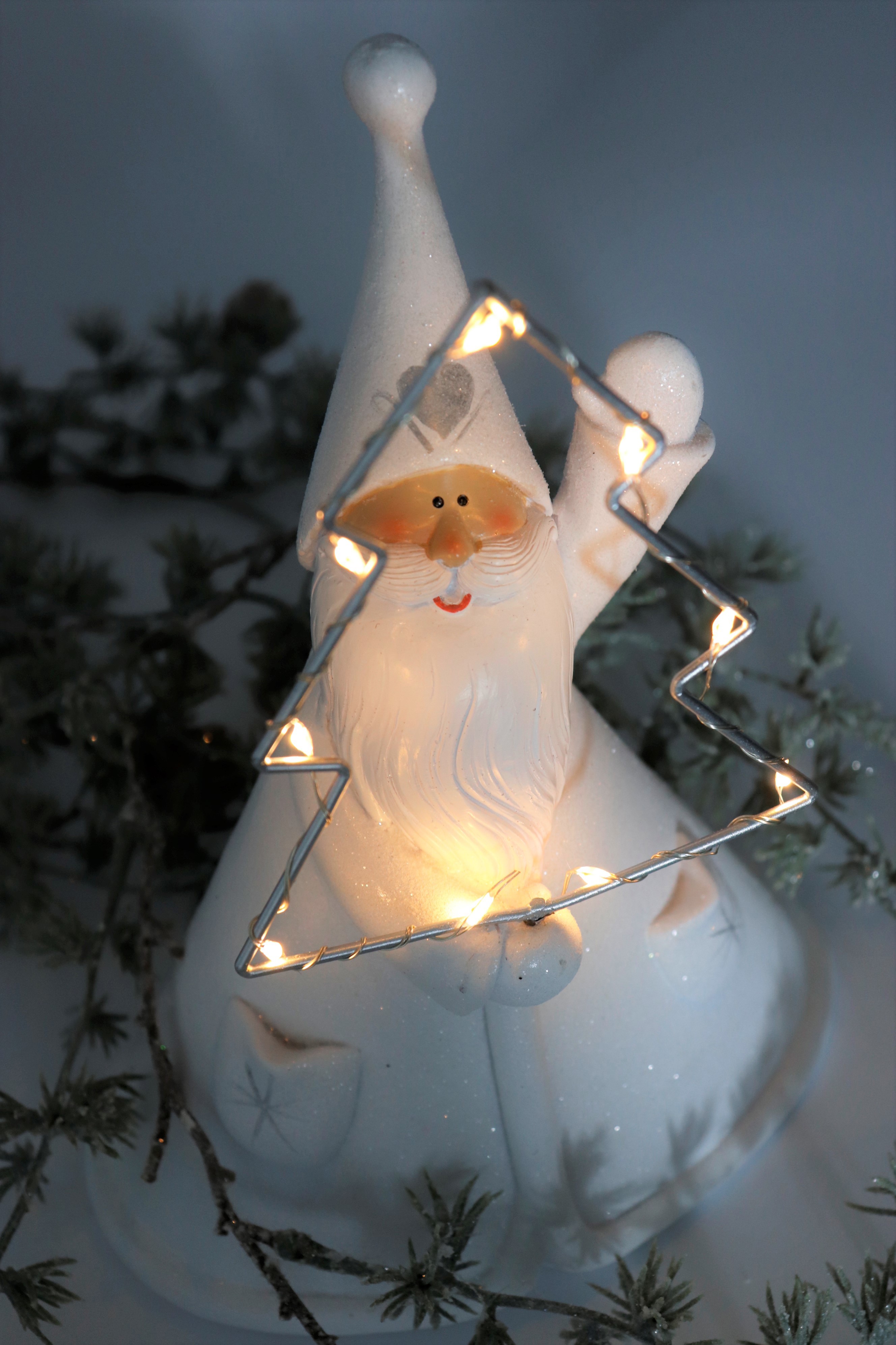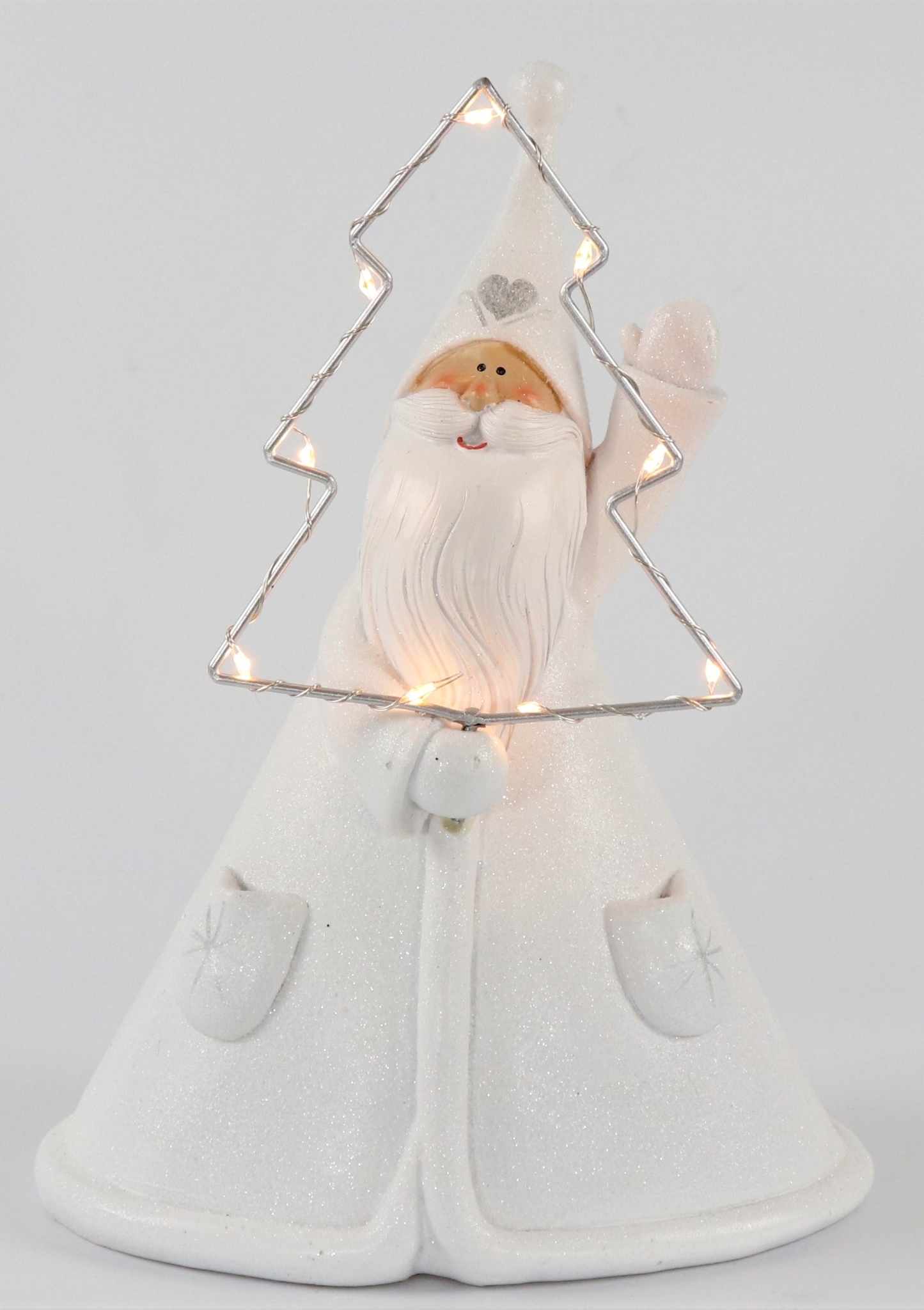 Aggiungete un tocco magico al vostro paese delle meraviglie invernale con il nostro incantevole Babbo Natale a LED. Realizzato in ceramica fine e metallo dettagliato, il Babbo Natale a LED con albero di Natale è la decorazione festiva perfetta per qualsiasi casa elegante o negozio attento alle tendenze nel settore della casa e del lifestyle. Con un'altezza di circa 23 cm, questo Babbo Natale a batteria non è solo un vero e proprio richiamo visivo, ma anche un pratico elemento di spicco nella vostra stagione natalizia.