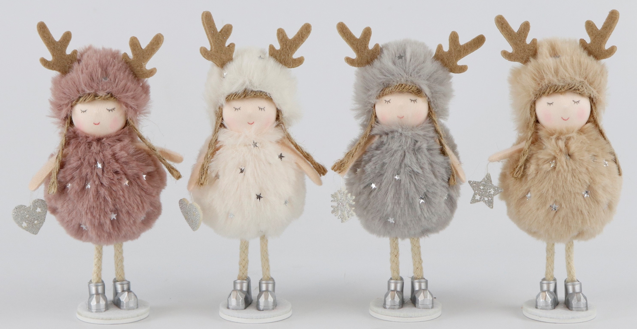 Il set è realizzato in poliestere, cotone e pelliccia sintetica di alta qualità, per aggiungere eleganza a qualsiasi ambiente. Con una dimensione di circa 21 cm, le "ragazze invernali" possono essere utilizzate da sole o in combinazione con altre decorazioni natalizie. Sono perfette per decorare vetrine, sale di vendita, salotti o come decorazioni uniche per la tavola.