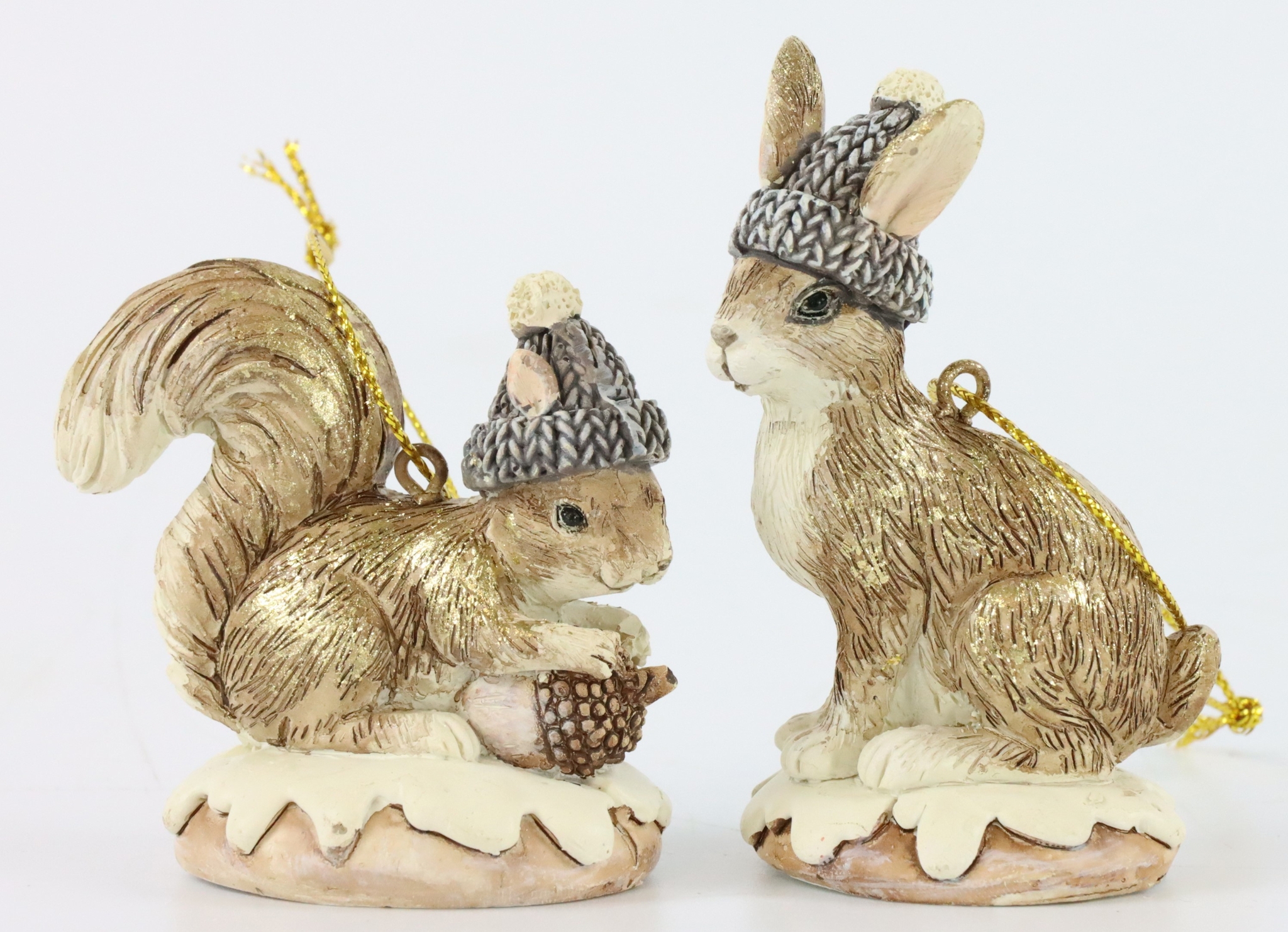- Set di 2 figurine di coniglietti del bosco in poliresina robusta e durevole.