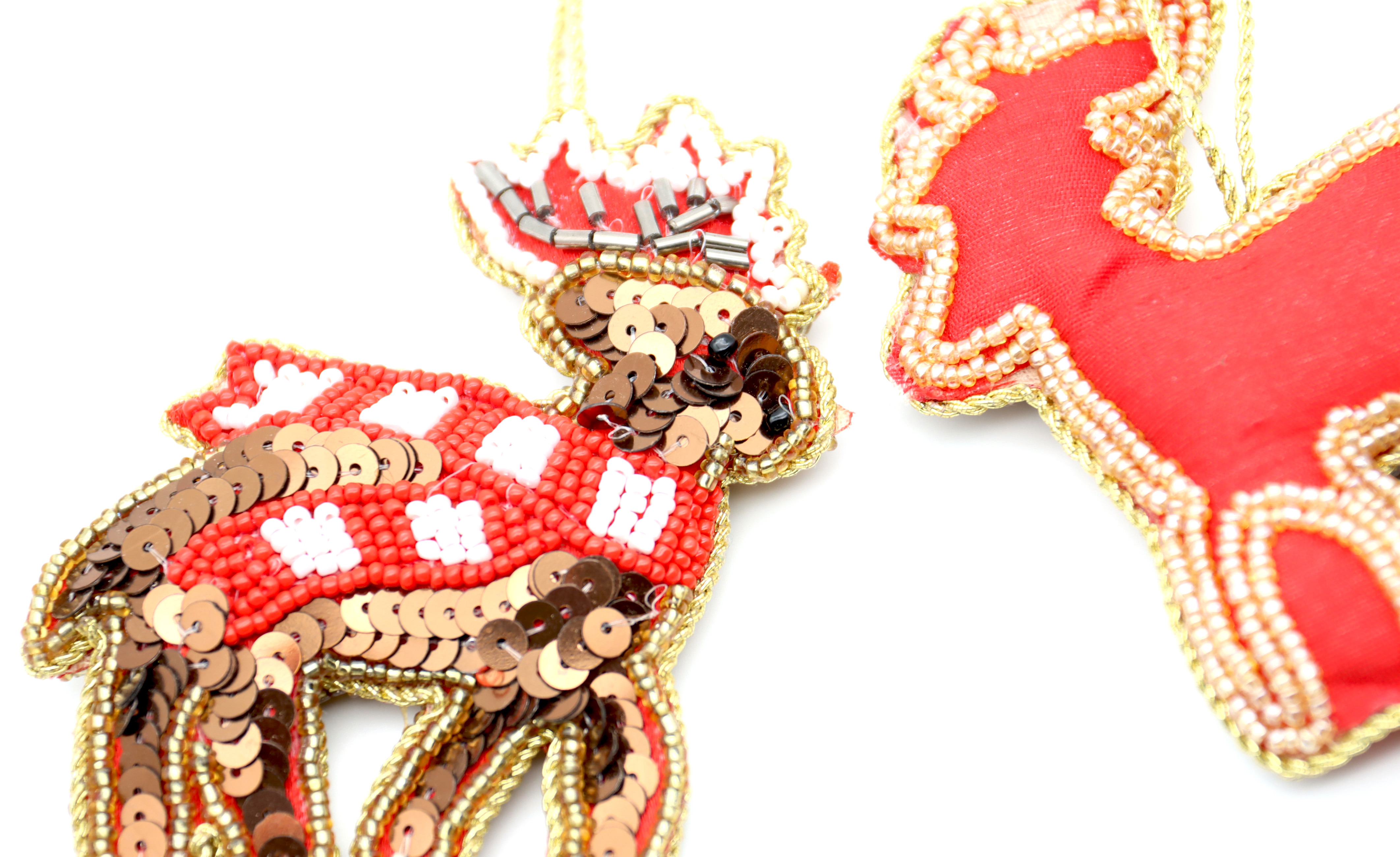 ITLa magia festiva della stagione invernale è completa solo con i giusti elementi decorativi. Il nostro esclusivo set di appendini per perline "XMAS-DEERS" porta questa magia in ogni stanza e racconta una storia di eleganza e accoglienza. Questi appendini fatti a mano in un set di quattro renne dettagliate sono la decorazione perfetta per addobbare l'albero di Natale, le finestre o i regali in modo unico. L'uso di paillettes di alta qualità nei toni caldi del marrone e del rosso conferisce a questi ornamenti a forma di renna un fascino lussuoso ma rustico, in linea con l'atmosfera natalizia.