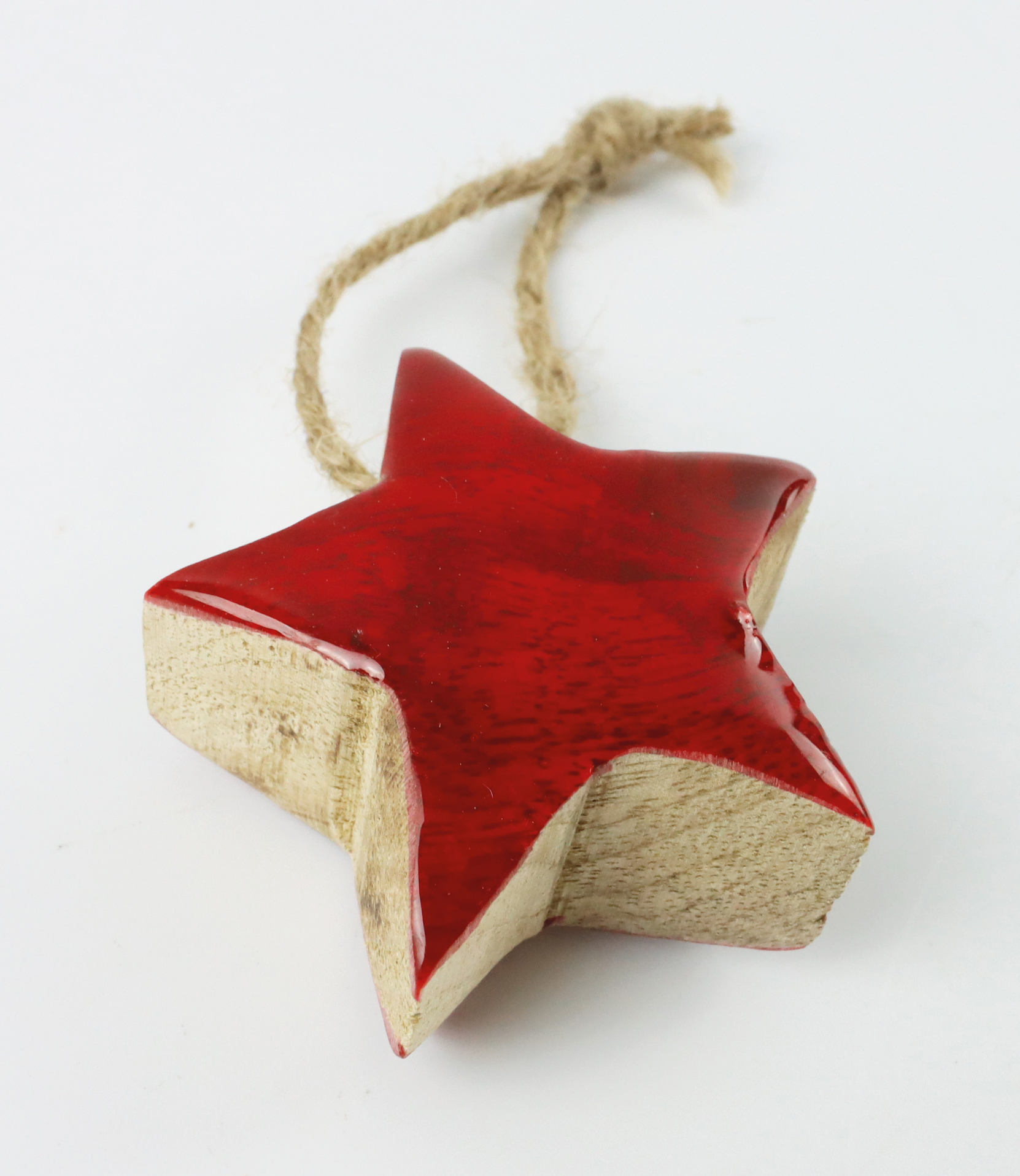 Con il potenziale di aumentare i margini della vostra attività e di deliziare i vostri clienti, il vaso con ciondolo a stella in legno di mango rosso è un must della vostra collezione natalizia.