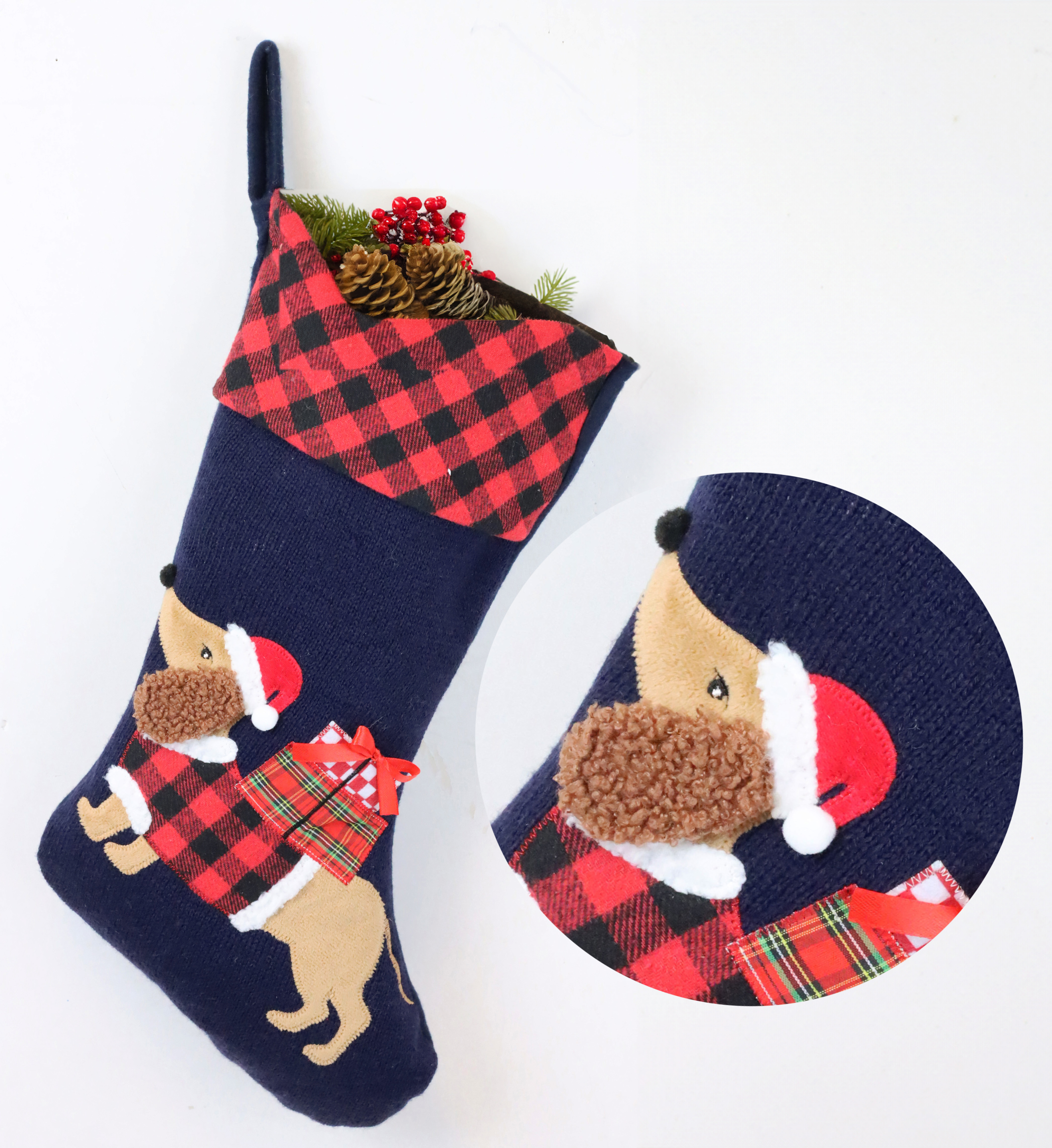 - **Design festoso:** Stivale unico con un allegro motivo natalizio di bassotti e regali.