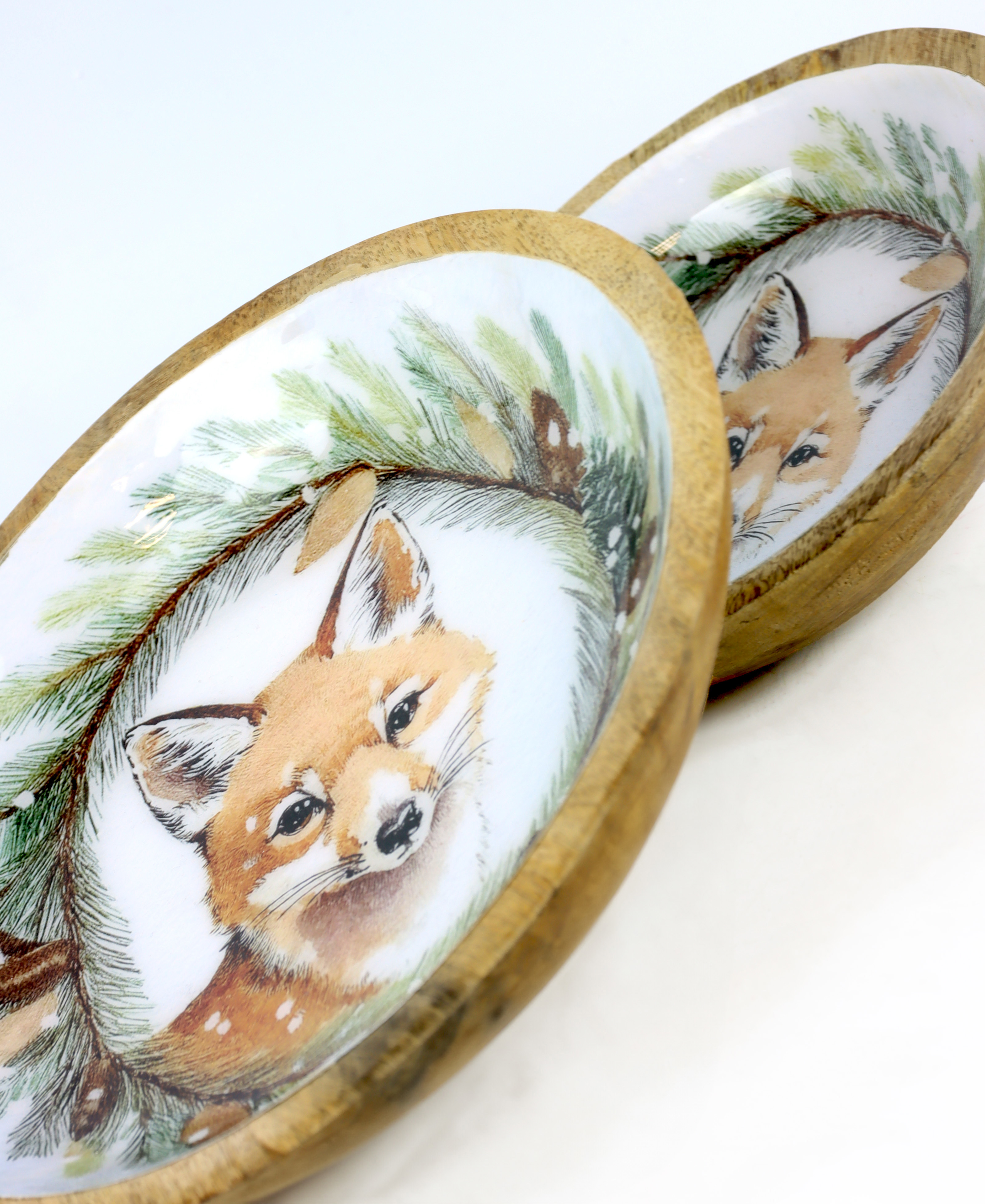 IT**Descrizione del prodotto "Set di ciotole in legno con volpe invernale "**.