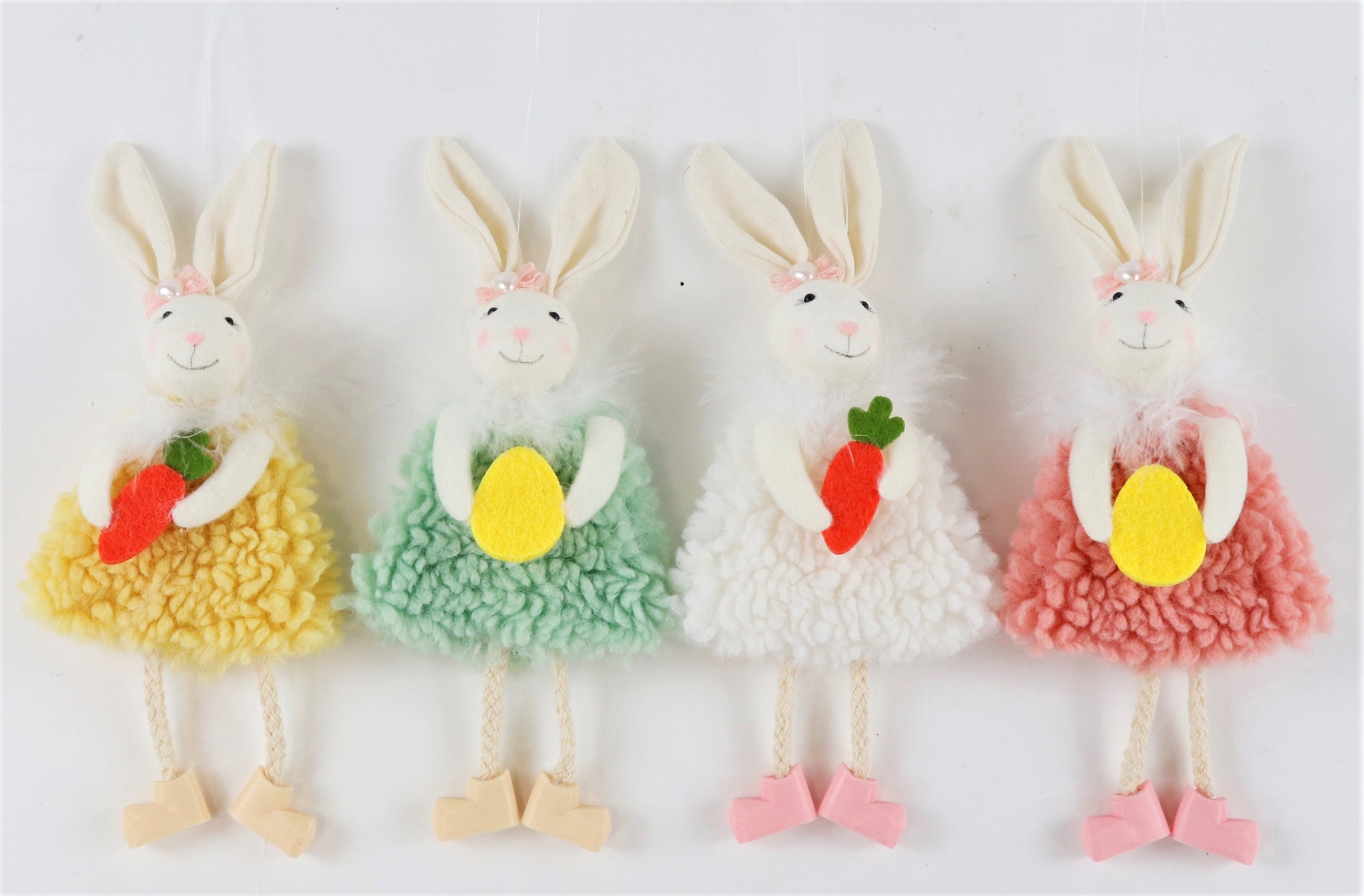 Con questo set di coniglietti, vi posizionate come fornitori di articoli decorativi stagionali accuratamente selezionati che delizieranno i vostri clienti e arricchiranno il vostro assortimento. Siate pronti per la Pasqua e distinguetevi dalla concorrenza con questi adorabili coniglietti appesi.