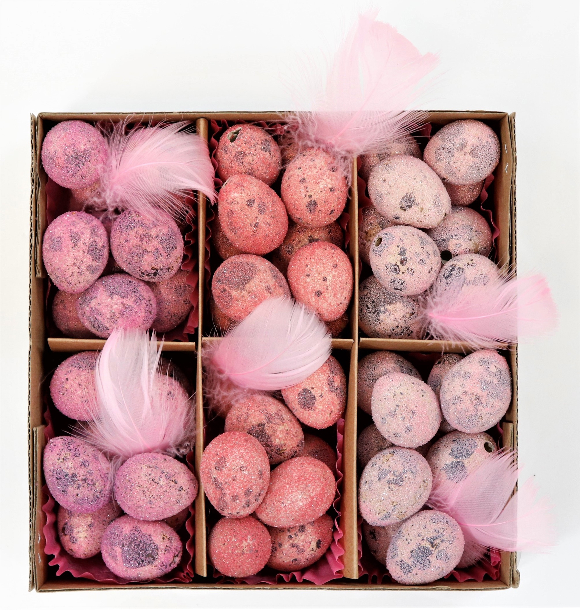 Confezionate in un'elegante scatola di circa 18,5 cm, queste uova di quaglia offrono ai rivenditori un'eccellente opportunità per creare accenti stagionali nelle vetrine o nei punti vendita. Le delicate tonalità rosa e i raffinati motivi delle uova creano un'atmosfera invitante e stimolante che attira i clienti e li invita a soffermarsi. Ideale per i rivenditori specializzati nel settore della casa e del lifestyle che desiderano offrire ai propri clienti oggetti decorativi unici ed esclusivi.