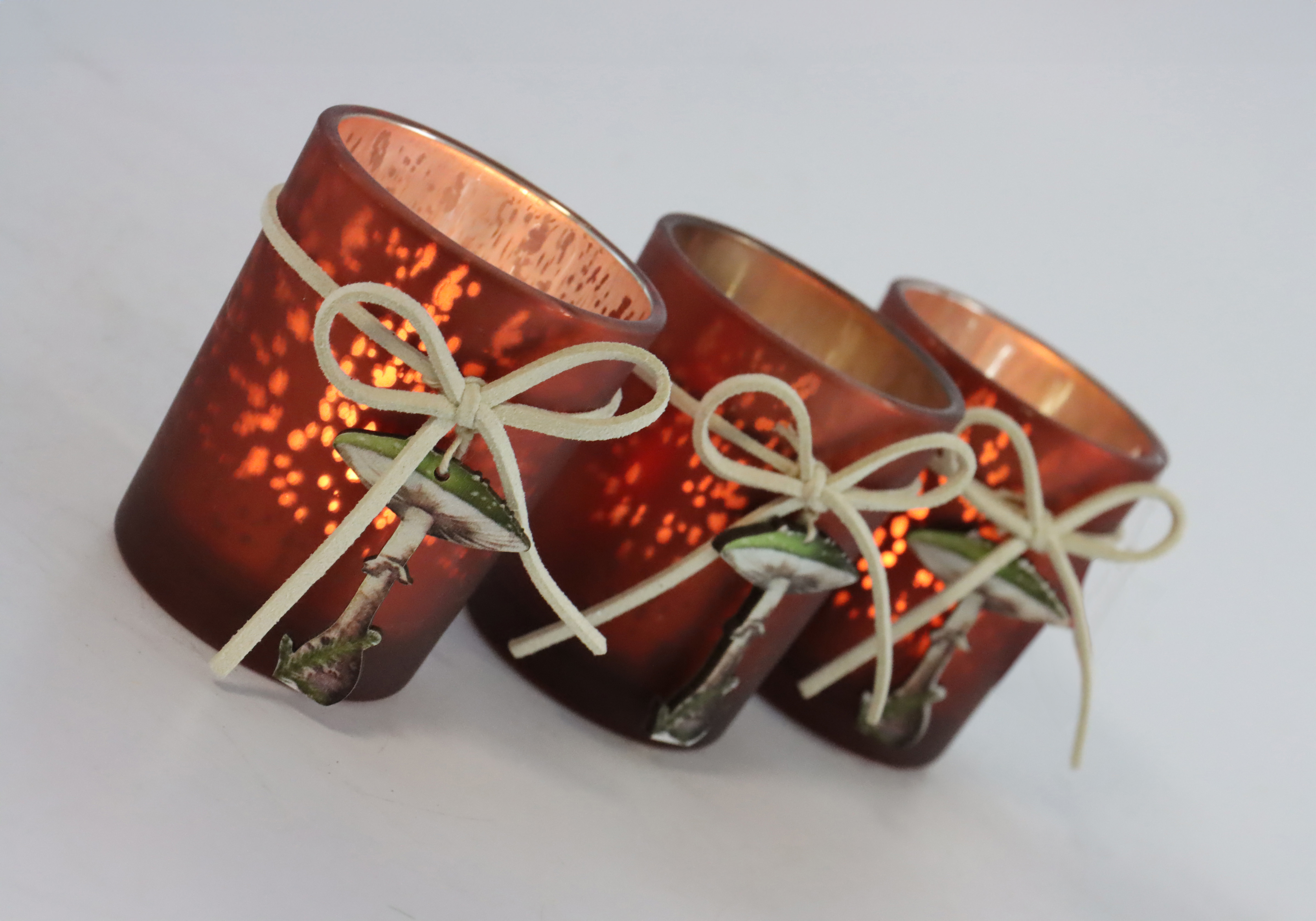 Portate una luce calda e suggestiva nelle vostre stanze e create un'atmosfera accogliente con il nostro incantevole set di luci da tavolo "Lucky Mushroom". Perfetto per la stagione autunnale e invernale, questo set di 3 luci da tavolo combina un affascinante motivo a fungo con materiali di alta qualità come il vetro e il legno. Le luci da tavolo, alte circa 6,5 cm, sono di un intenso colore rosso che irradia calore e accoglienza e immerge ogni casa in un'atmosfera fiabesca.