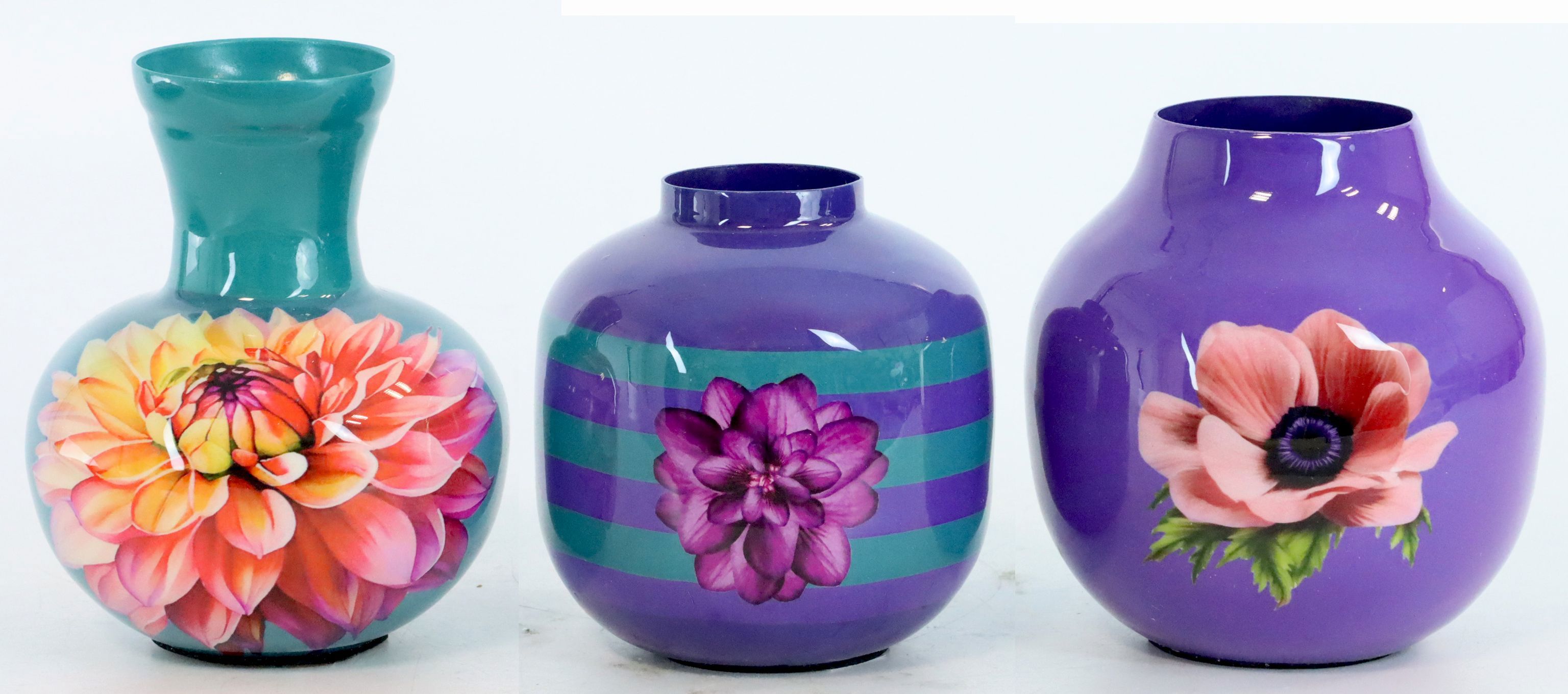 Innen aus hochwertiger Keramik gefertigt, bietet das Vasentrio Langlebigkeit und Stabilität, während die glänzende Oberfläche den raffinierten Blumendruck perfekt zur Geltung bringt. Ob als einzelnes Dekorelement oder im Zusammenspiel mit anderen Wohnaccessoires, diese Vasen sind vielseitig einsetzbar und bieten zahlreiche Gestaltungsmöglichkeiten. Ideal eignen sie sich, um frische Blumen oder stilisierte Trockenblumenarrangements effektvoll zu präsentieren.