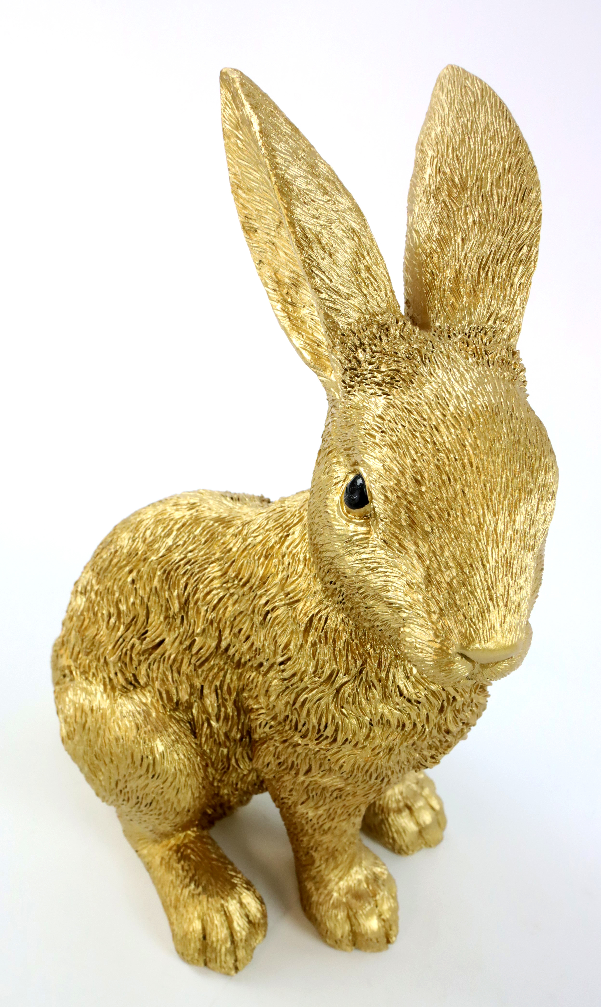 Verleihen Sie Ihrem Geschäft in der kommenden Ostersaison einen exklusiven und edlen Touch mit unserem prächtigen HASE "BUSY BUNNY". Dieser luxuriöse Hase, gefertigt aus hochwertigem Polyresin, ist in einem strahlenden Goldton gehalten, der jedem Raum eine Atmosphäre von Eleganz und Festlichkeit verleihen wird. Mit einer Höhe von ca. 22 cm ist dieser Osterhase der perfekte Eyecatcher für Schaufensterdekorationen, Warenpräsentationen und als stilvolles Dekorationselement in Ihrer Innenausstattung.