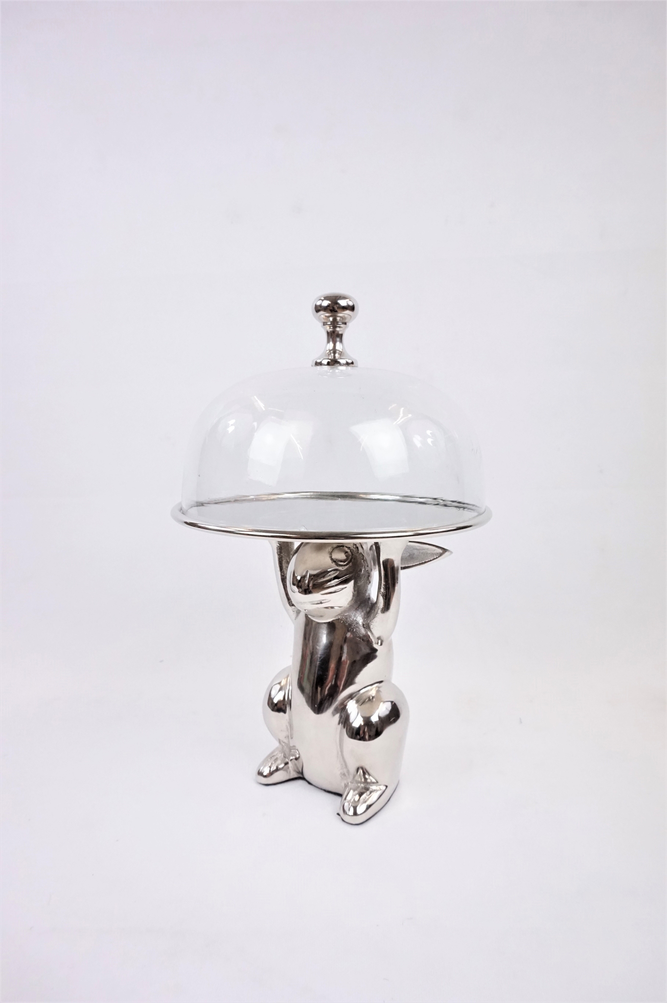 Entdecken Sie die exquisite Abdeckhaube „Hase“ aus glattem Metall, die Ihrem Oster-Dekor eine außergewöhnliche Note verleiht. Diese hochwertige Abdeckhaube ist nicht nur ein hervorragendes Stück Kunsthandwerk, sondern auch ein praktisches Accessoire für Ihren Osterbrunch. Die stilvolle Ausführung in silbernem Glanz macht sie zu einem Hingucker auf jedem Tisch und lässt die Herzen der Liebhaber von Wohn- und Lifestyle-Accessoires höherschlagen.