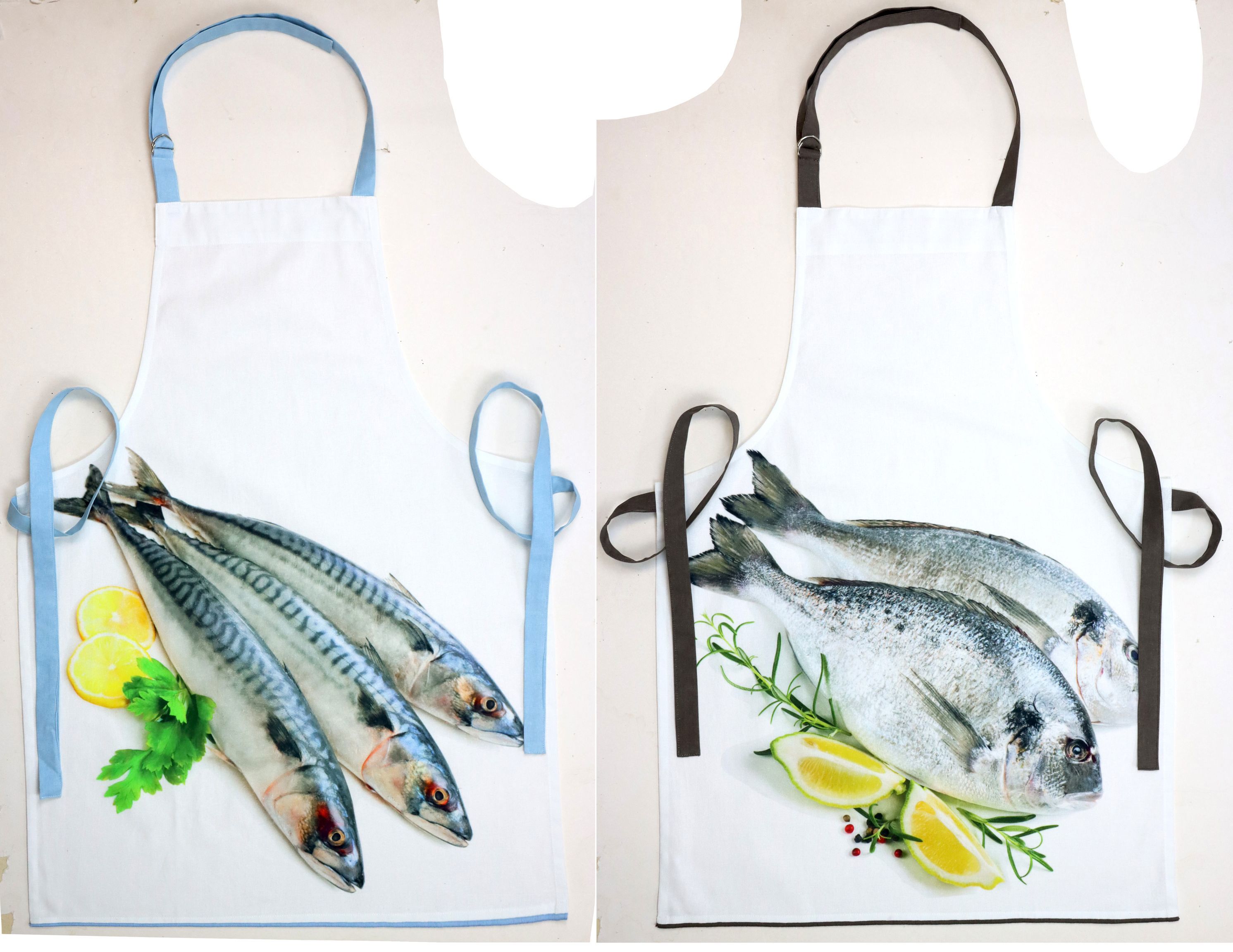 **Produktbeschreibung für das Schürzenset "FISH" (2-teilig) – Perfekt für den Einzelhandel im Bereich Wohnen und Lifestyle**