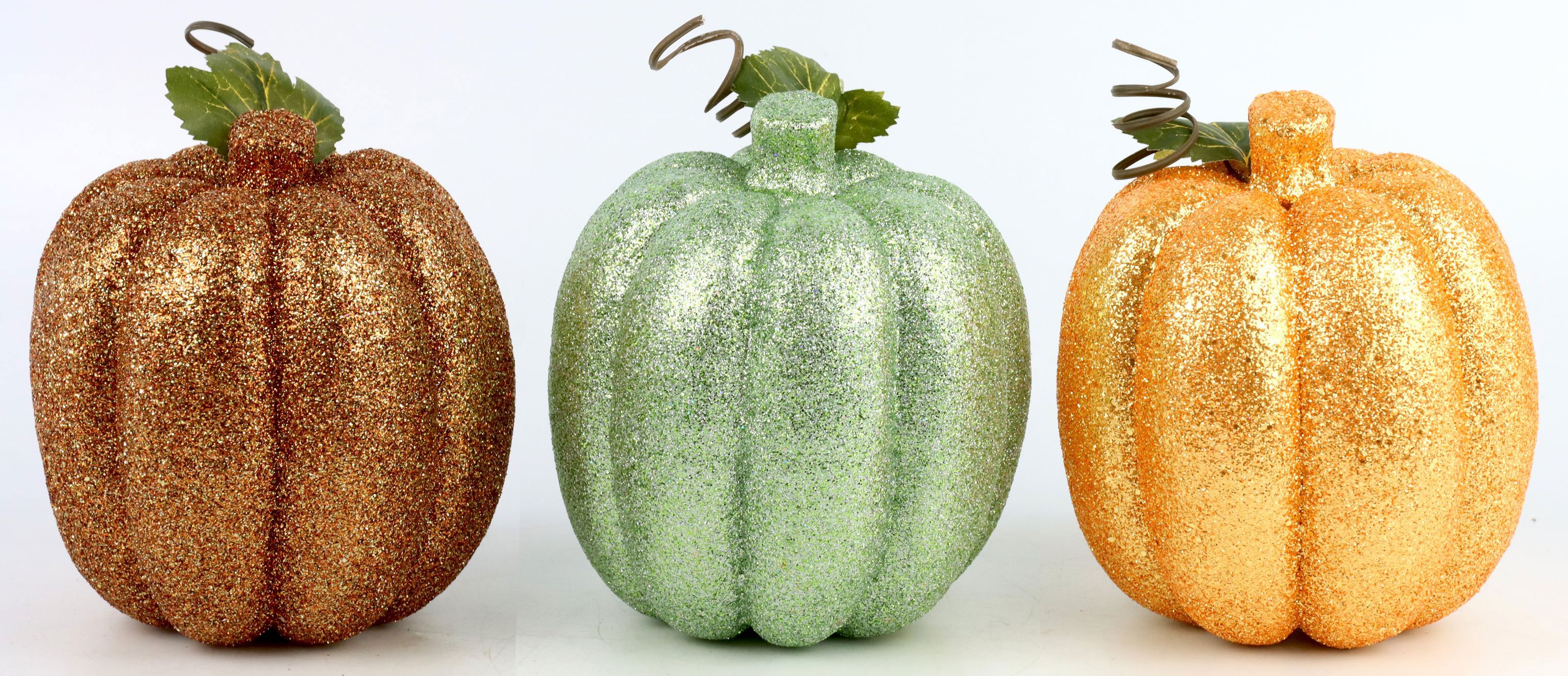 4. Set besteht aus drei einzigartig funkelnden Zierkürbissen.