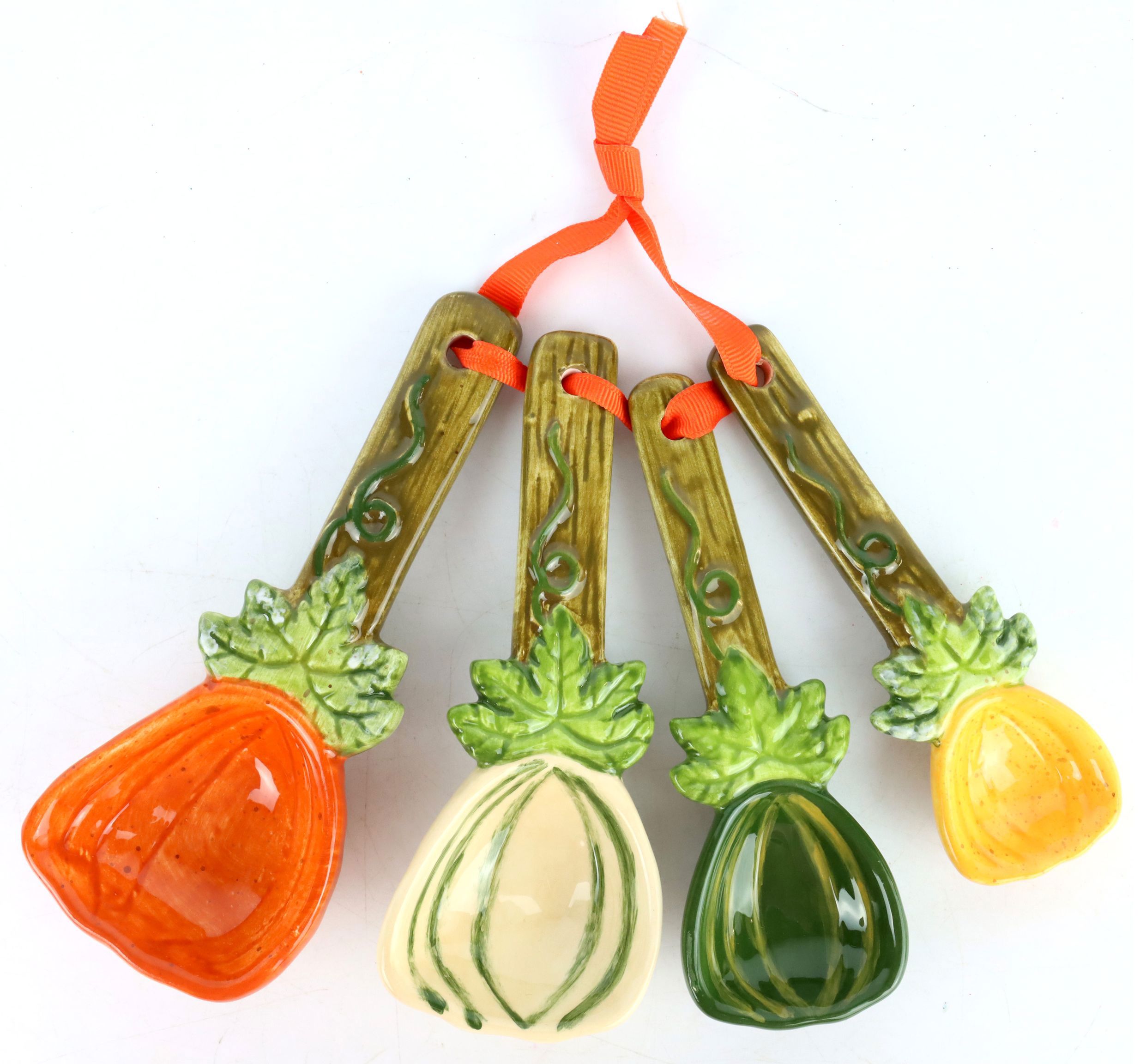 Entdecken Sie unser bezauberndes Set aus vier Keramik-Messlöffeln "Pumpkin", die perfekte Ergänzung für jede Küche. Unser vierteiliges Messlöffelset (Artikelnummer 9343) wird Ihre kulinarischen Kreationen, insbesondere in der Herbst/Winter Saison, mit Charme und Stil aufwerten.