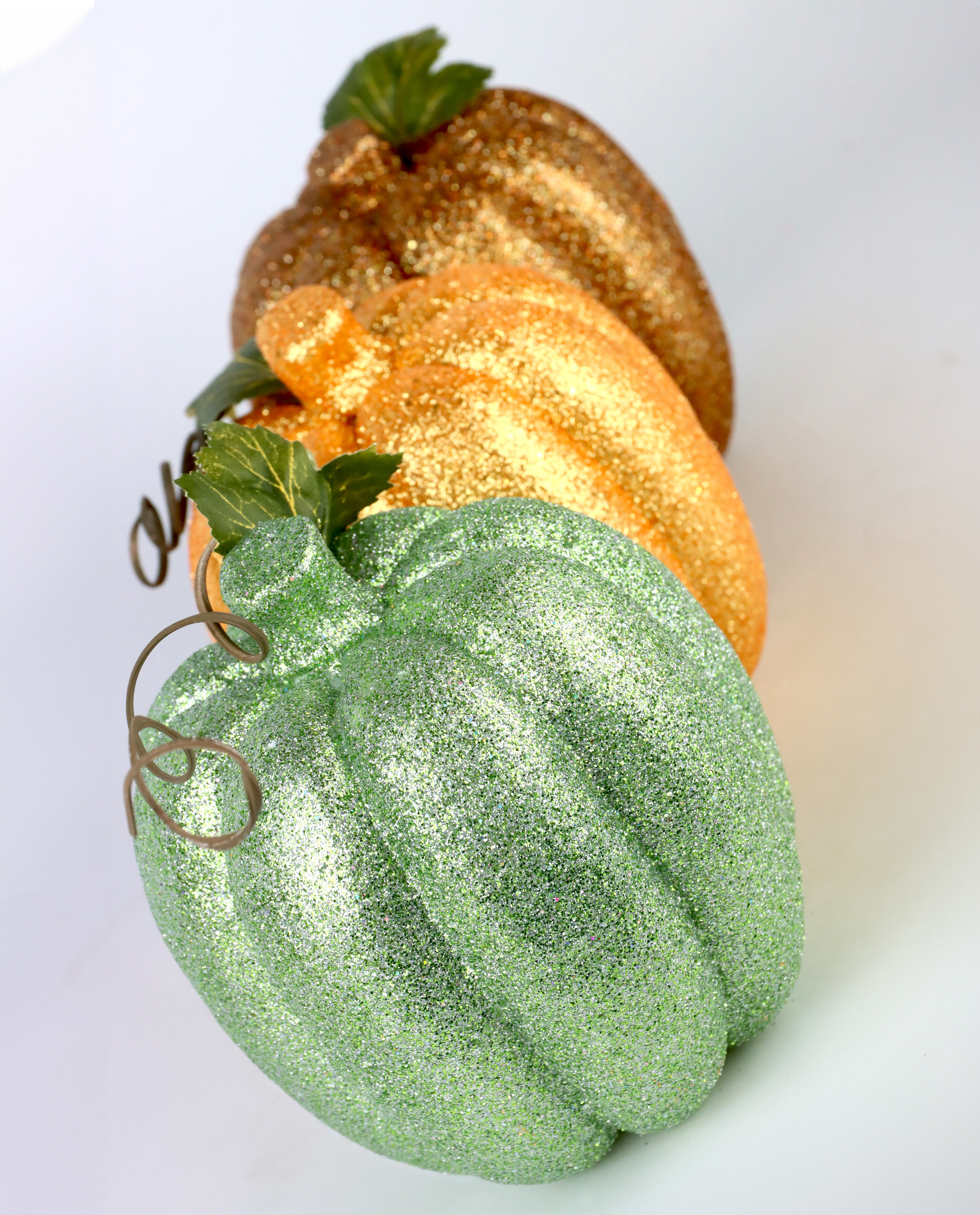 4. Set besteht aus drei einzigartig funkelnden Zierkürbissen.
