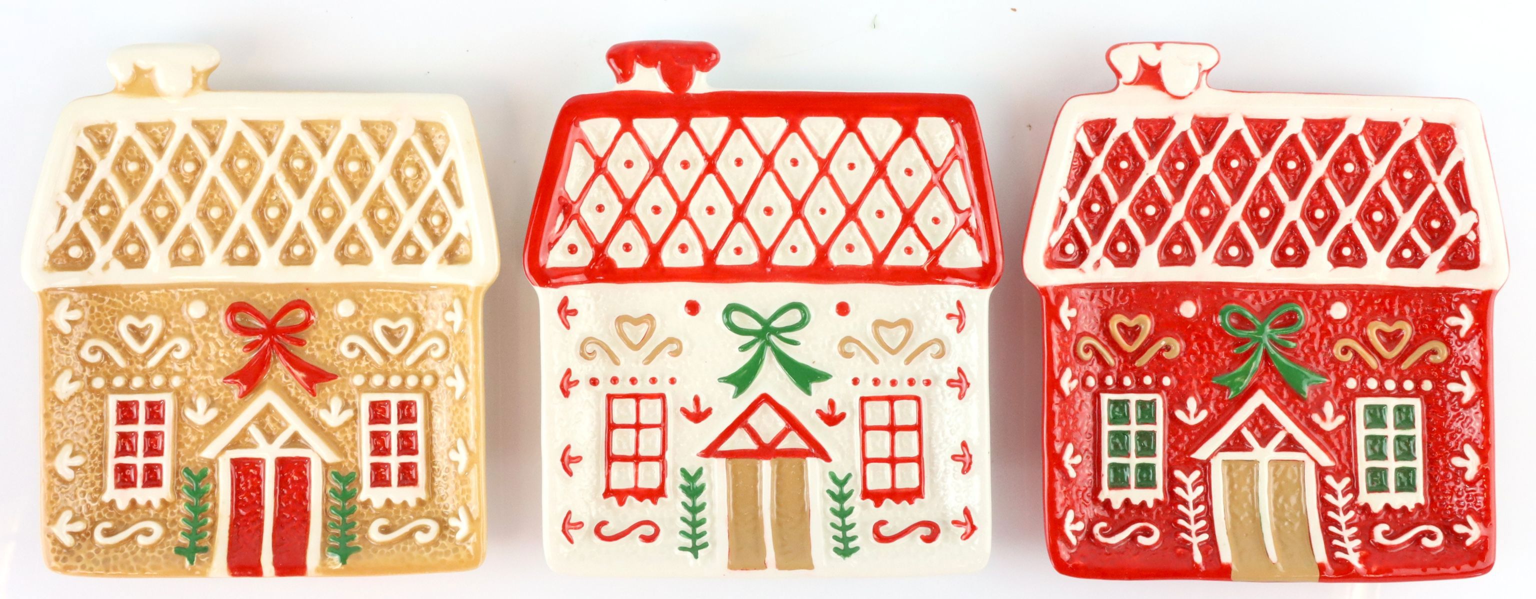 DEEntdecken Sie das bezaubernde Tellerset "Candy Cottage", das perfekte Accessoire für Ihre weihnachtliche Tischdekoration! Dieses dreiteilige Set aus hochwertiger Keramik bringt festliche Freude in den Einzelhandel und verschönert jede Auslage im Bereich Wohnen und Lifestyle. Inspiriert von den süßen Häuschen aus Lebkuchenteig, zieht das Set mit seinem charmanten Design aus Zuckerhaus-Motiven in Braun, Weiß und Rot alle Blicke auf sich. Die Teller haben einen Durchmesser von ca. 14 cm und eignen sich hervorragend zum Servieren von kleinen Leckereien wie Plätzchen, Pralinen oder anderen festlichen Köstlichkeiten.