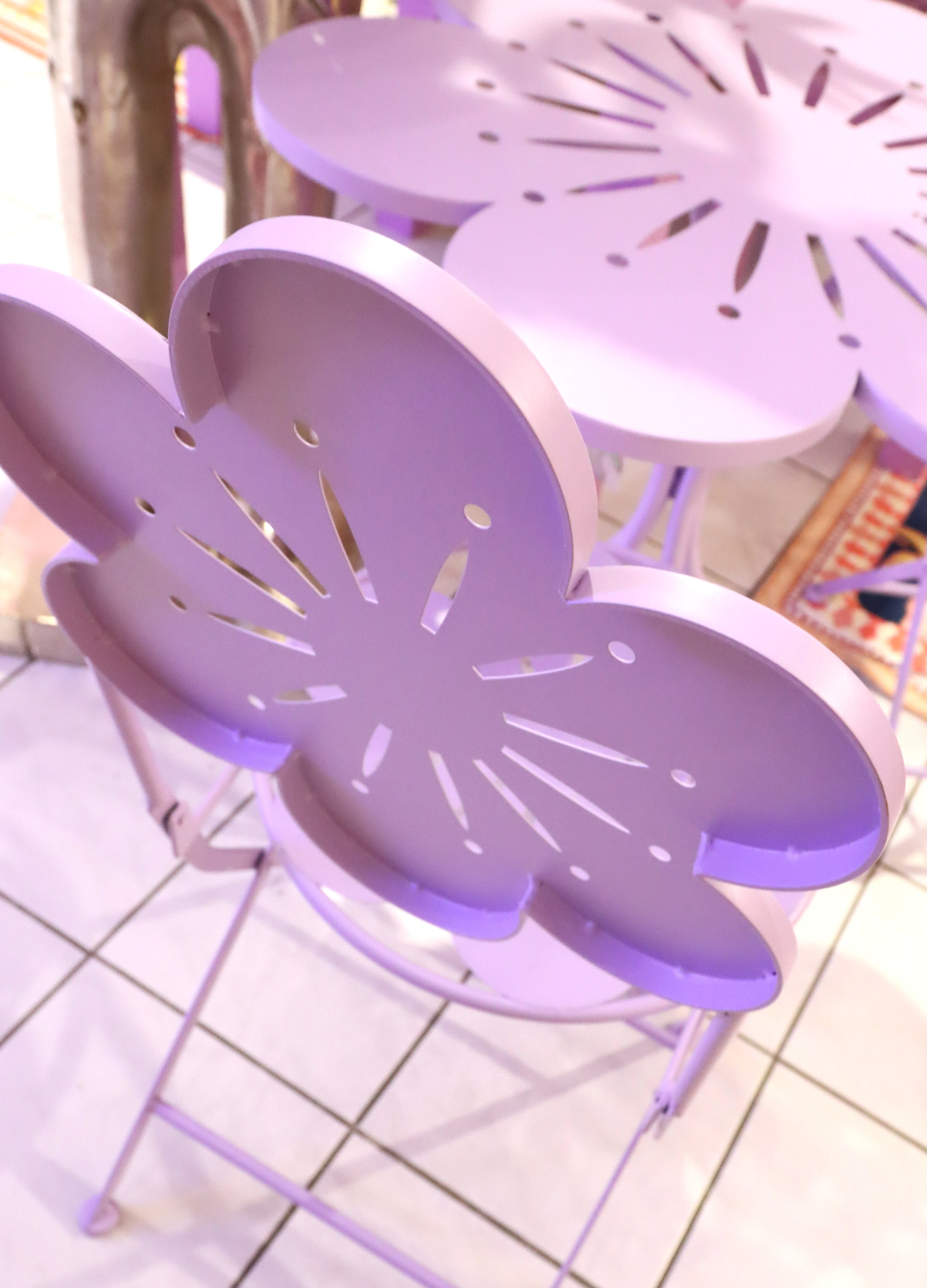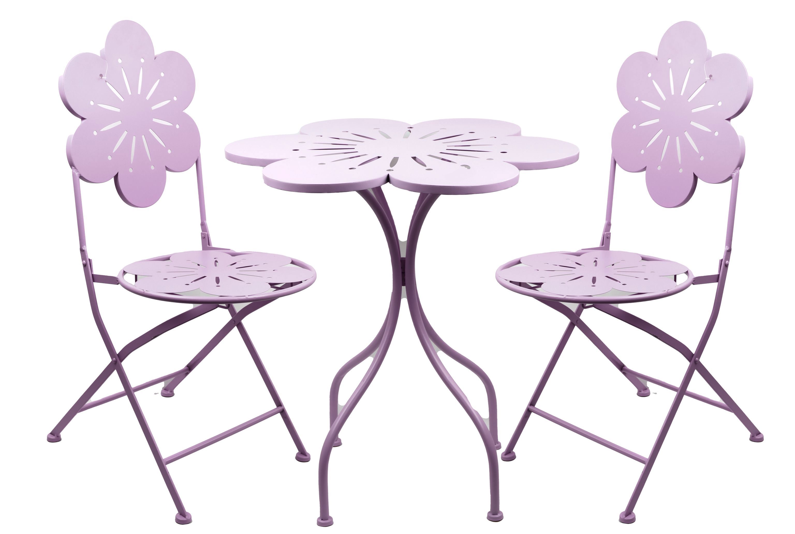 Bringen Sie frühlingshafte Frische und stilvolle Eleganz in Ihr Sortiment mit der zauberhaften Tisch-Stuhlgarnitur "BLOSSOM" S/3. Dieses exklusive Set, bestehend aus einem Tisch mit einem Durchmesser von ca. 70 cm und zwei Stühlen, verzaubert durch sein verspieltes lila Blumenmotiv und verleiht jedem Garten, Balkon oder Wohnzimmer das gewisse Etwas. Die hochwertige Verarbeitung aus robustem Eisen sorgt für eine hohe Langlebigkeit und eine zeitlose Optik, die sowohl in modernen als auch in klassischen Wohnumgebungen perfekt zur Geltung kommt.