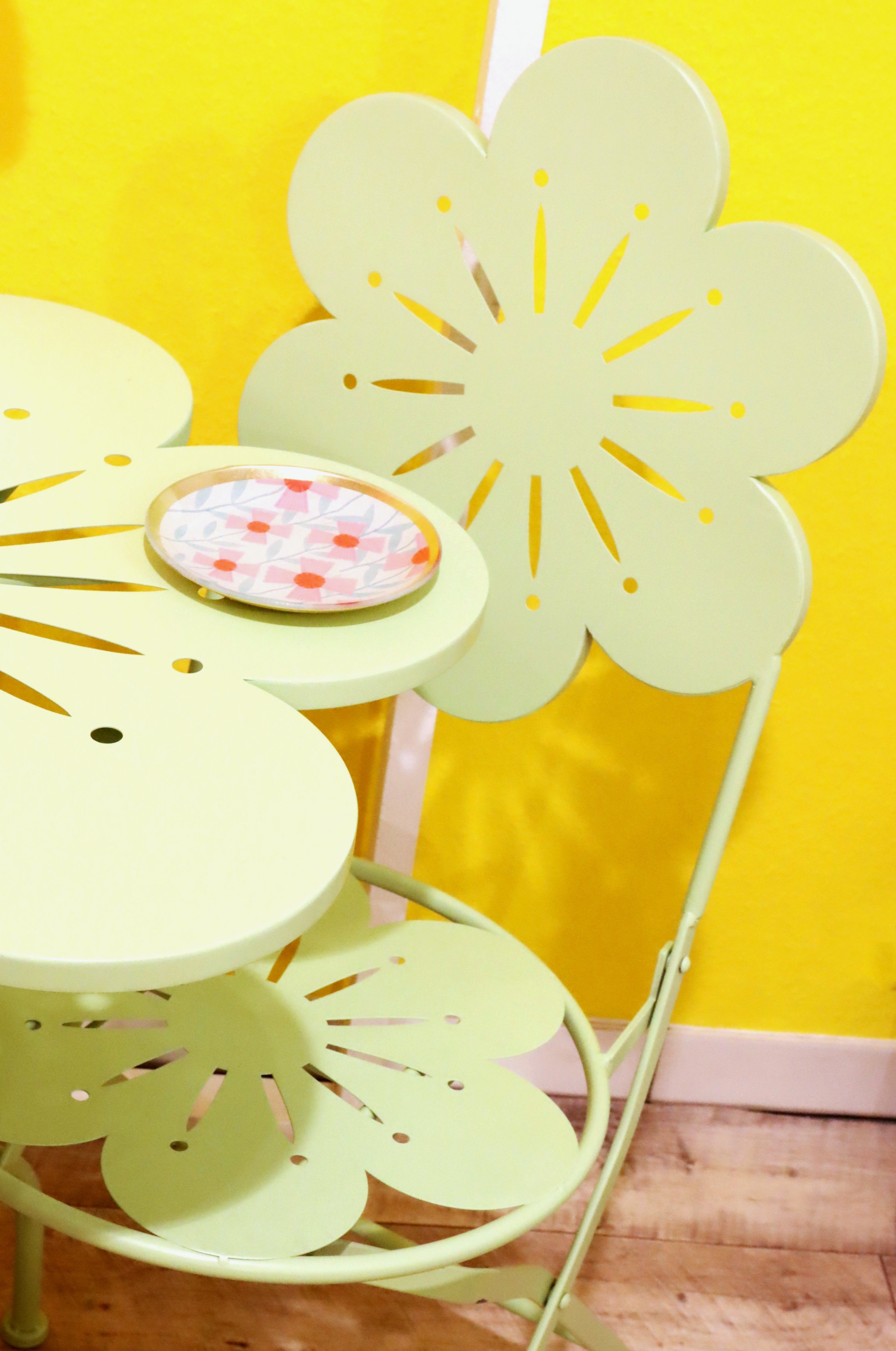 Setzen Sie auf die Tisch-Stühle-Garnitur "BLOSSOM" S/3 für ein florales Highlight in Ihrem Geschäft.