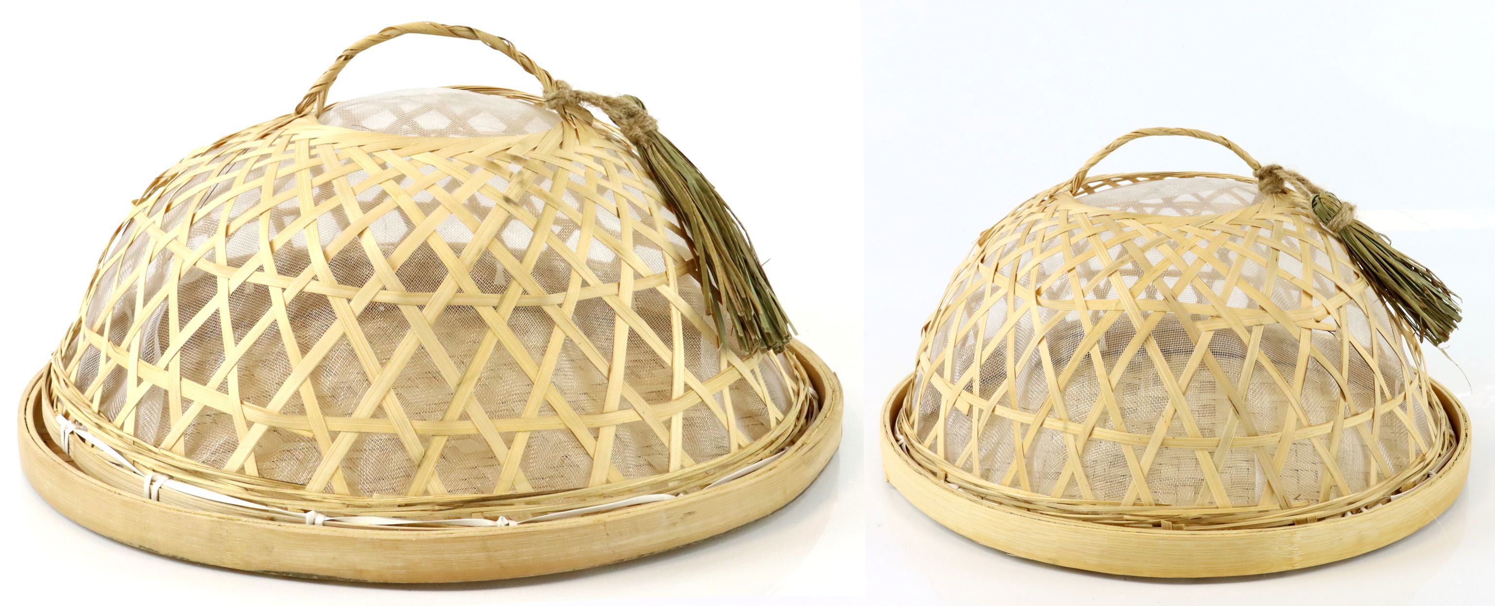 Das Abdeckhauben-Set „Nomad Kitchen“ ist speziell für die Frühjahr/Sommer-Saison konzipiert, wenn Picknicks im Freien, Grillabende und Gartenpartys Hochkonjunktur haben. Mit einem Durchmesser von 44cm und 36cm bieten diese Hauben ausreichend Platz, um Ihre Lebensmittel vor Insekten und Umwelteinflüssen zu bewahren. Die Kombination aus Bambus, Polyester und Jute verleiht den Hauben nicht nur eine ansprechende, natürliche Optik, sondern gewährleistet auch eine hohe Langlebigkeit und Stabilität.