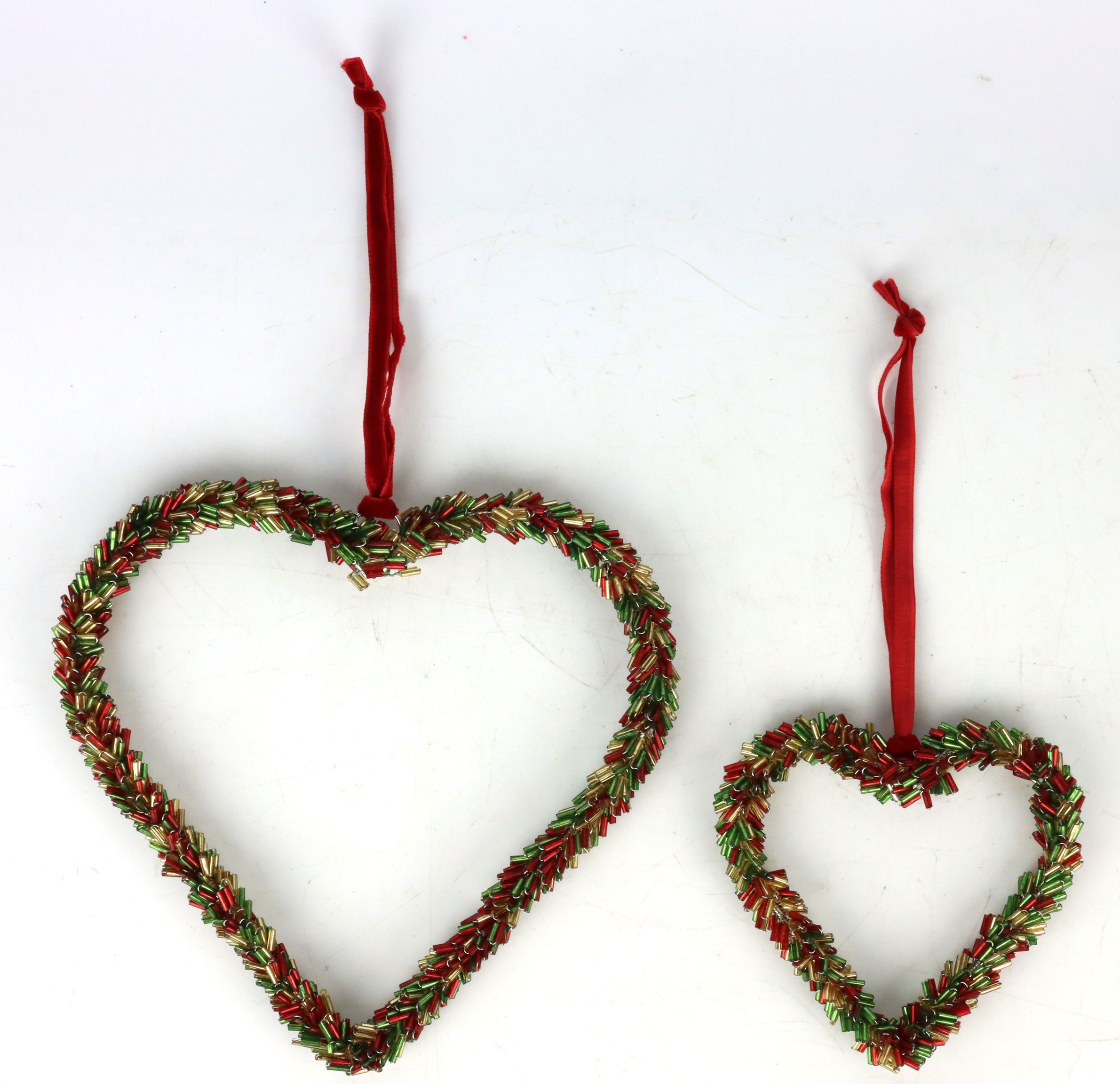 Entdecken Sie den Zauber der Weihnachtszeit mit unserem zauberhaften Zierhänger "Herz" S/2! Dieses exquisite, 2-teilige Set bringt festliche Eleganz in jeden Raum und ist ein Must-Have für Einzelhändler im Bereich Wohnen und Lifestyle. Jeder Zierhänger ist kunstvoll aus hochwertigen grünen, goldenen und roten Perlen gefertigt, die im Licht festlich schimmern und eine warme, einladende Atmosphäre schaffen. Perfekt, um die Herzen Ihrer Kunden höherschlagen zu lassen und Ihr Weihnachtsangebot zu bereichern.