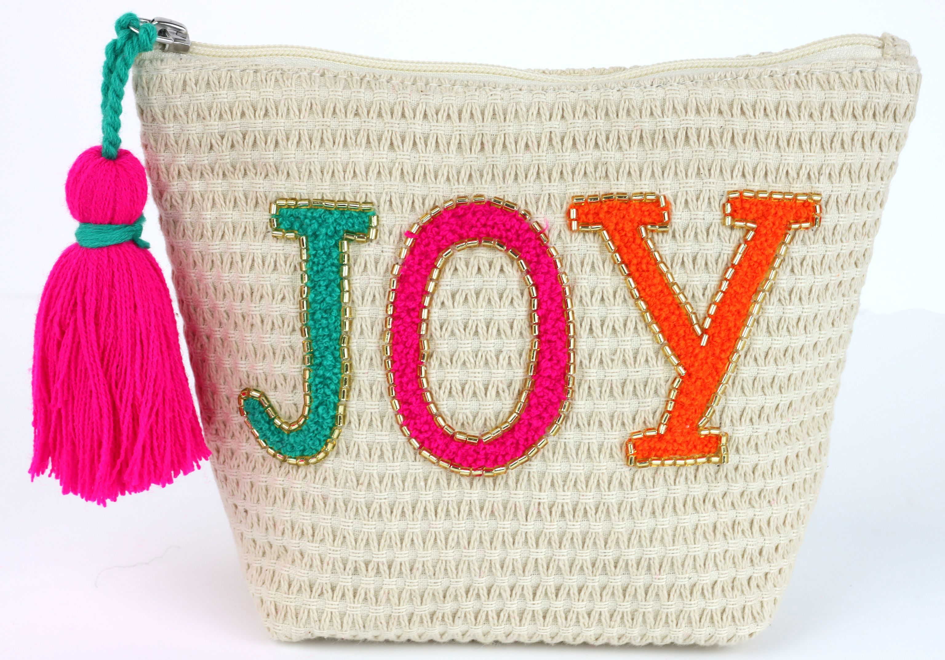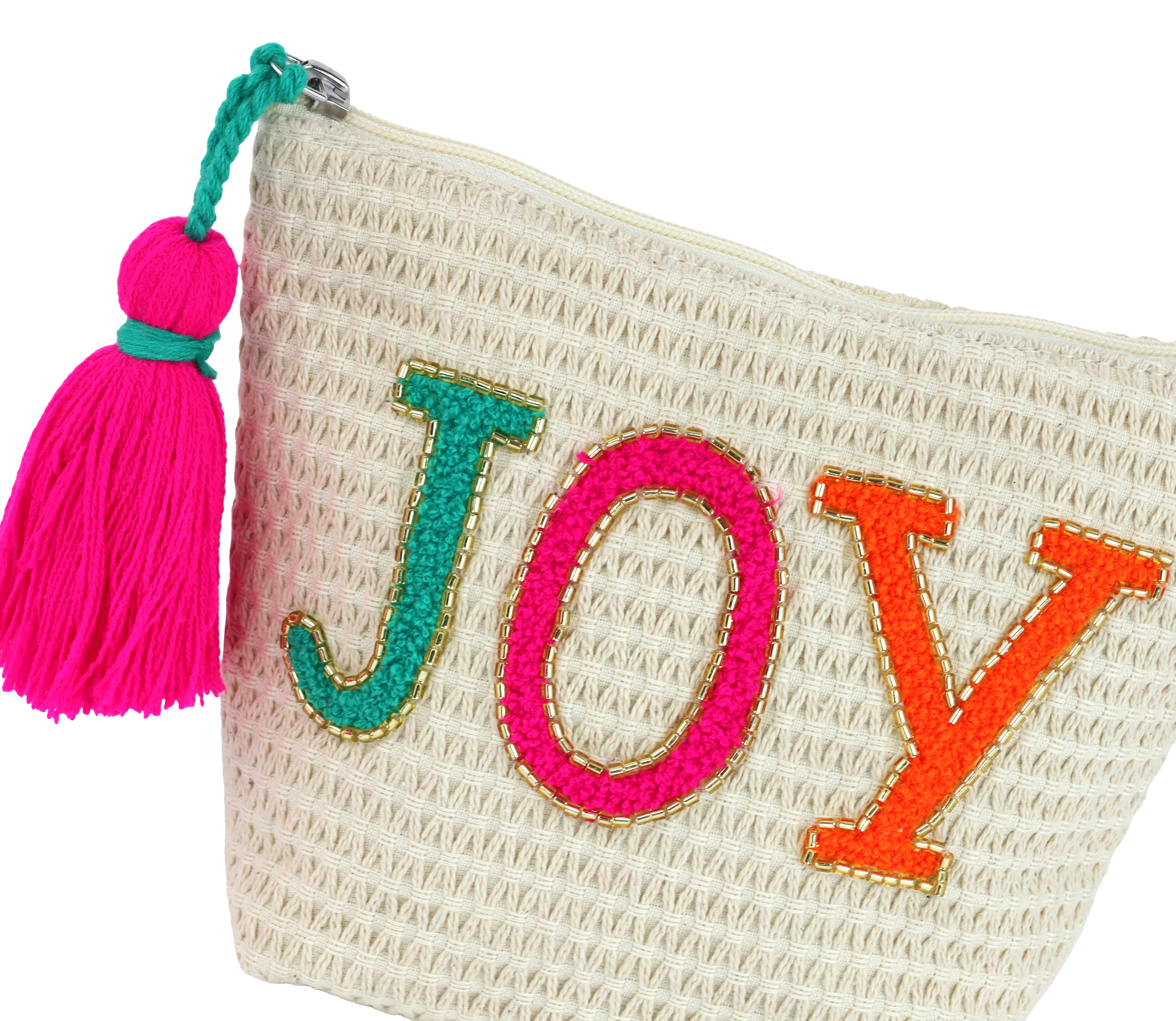 Der aufgestickte Schriftzug „Joy“ auf der Vorderseite fungiert dabei als ansprechender Blickfang und weckt positive Emotionen. Solche Details machen es zu einem Must-have-Accessoire im Bereich Wohnen und Lifestyle, welches im stationären Einzelhandel sicherlich hohe Aufmerksamkeit erregt. Ob als Etui für Kosmetikartikel, Aufbewahrung für Schmuck oder als trendiges Portemonnaie – die vielseitigen Anwendungsmöglichkeiten versprechen ein hohes Absatzpotenzial.