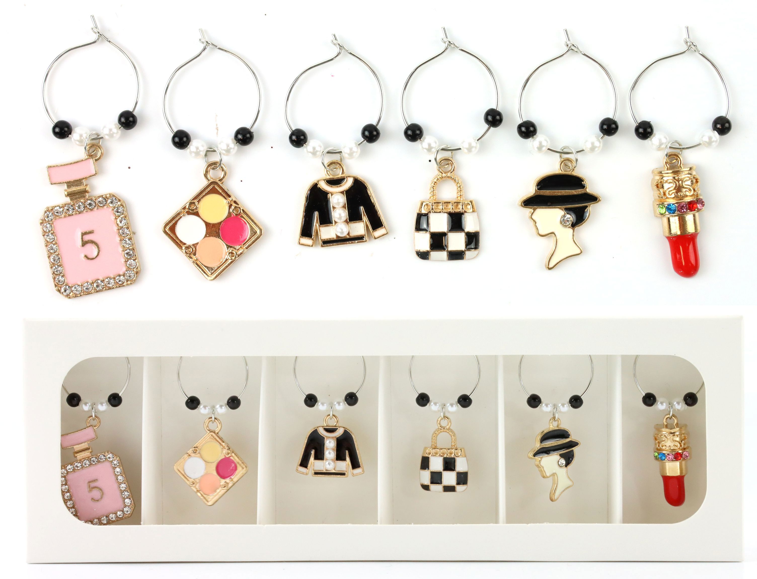 - Elegantes 6-teiliges Glasmarkerset aus robustem Metall.