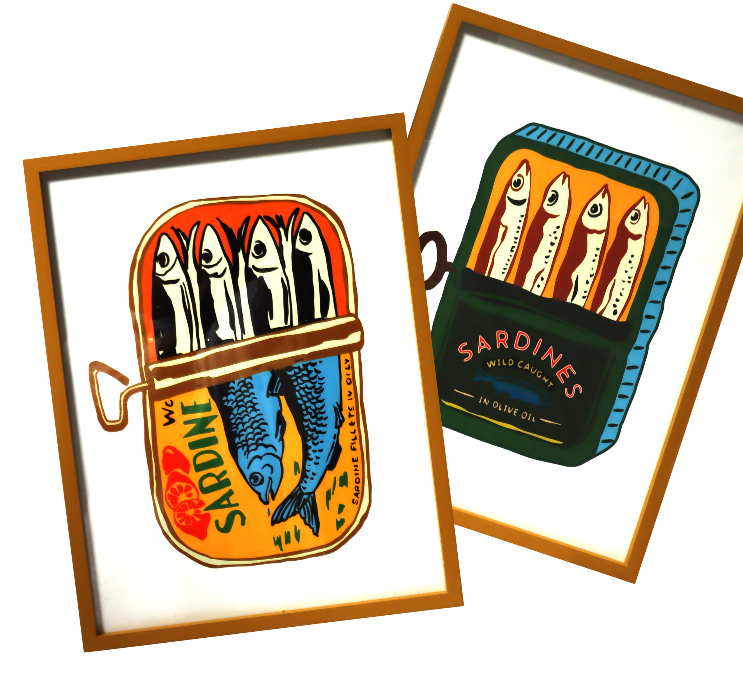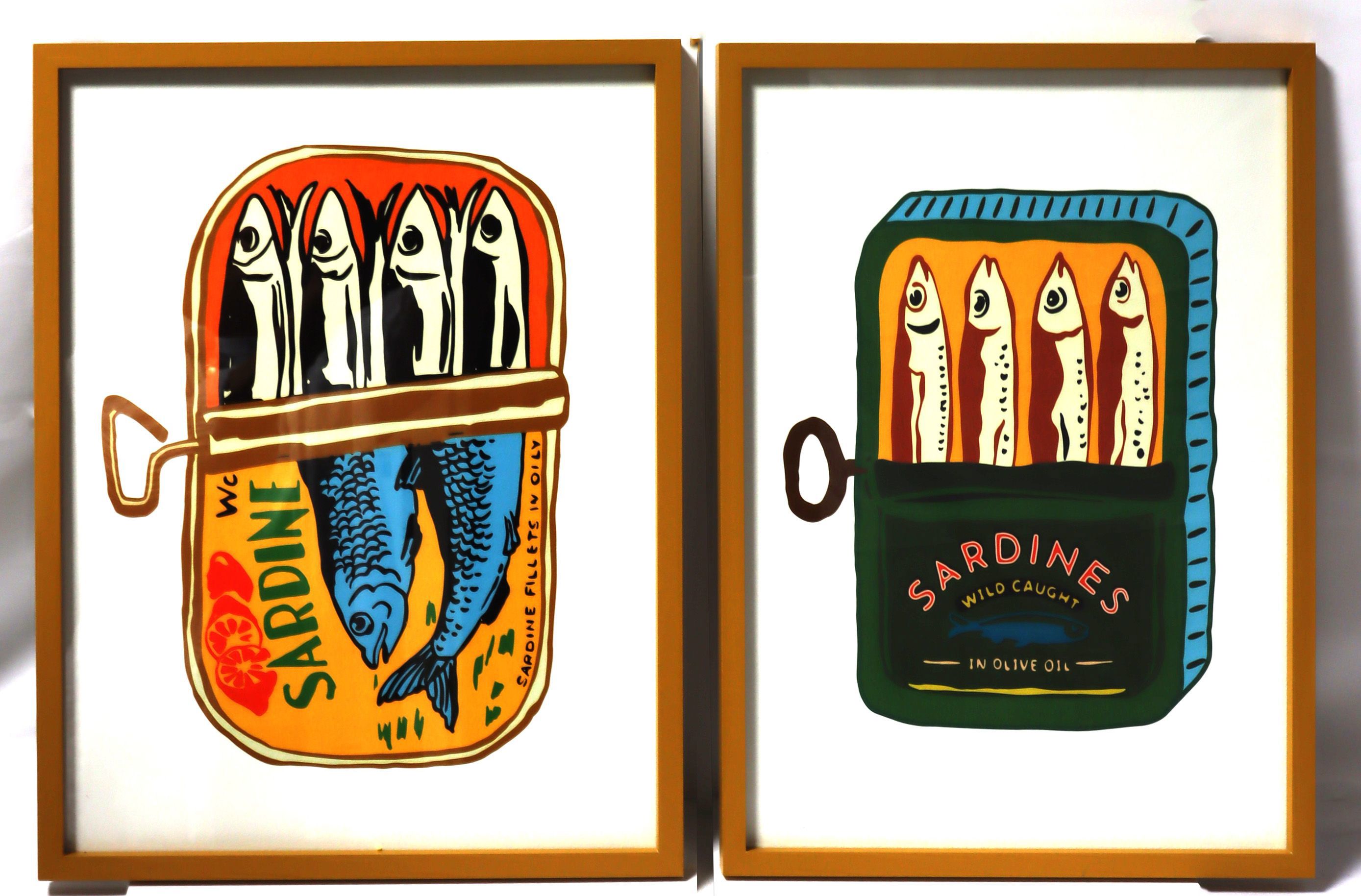 - Set aus 2 individuellen Wandbildern mit Sardinendosen-Motiv