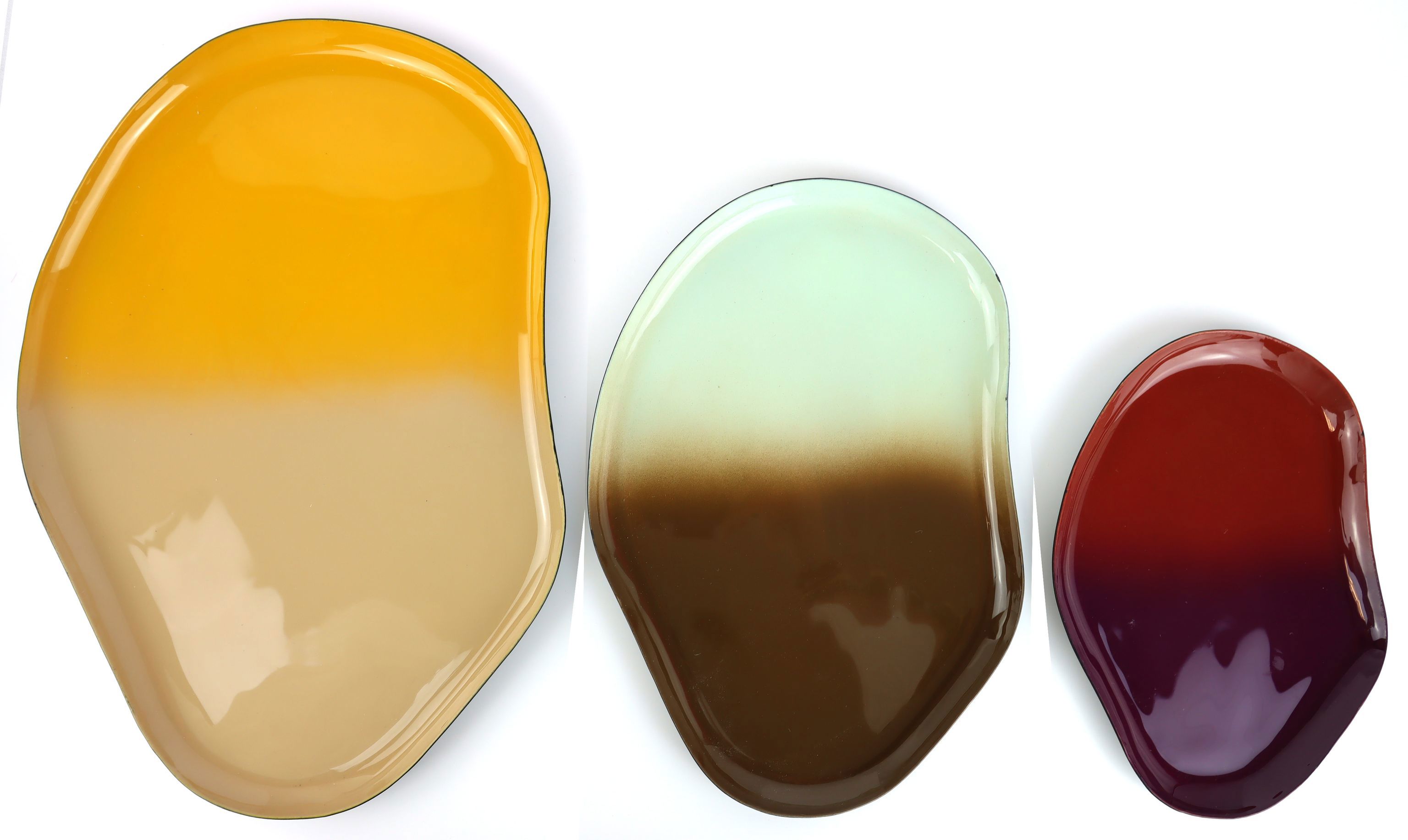 Gefertigt aus robustem Eisenguss und veredelt mit einer emaillierten Oberfläche, überzeugen diese Tabletts nicht nur durch ihre Langlebigkeit, sondern auch durch ihr ansprechendes Design in erdigen Farbtönen. Mit einem Durchmesser von jeweils ca. 27 cm bietet jedes Tablett ausreichend Platz für kreative Arrangements. Das Set besteht aus drei unterschiedlich großen Tabletts, die sich hervorragend ergänzen und flexibel einsetzbar sind.