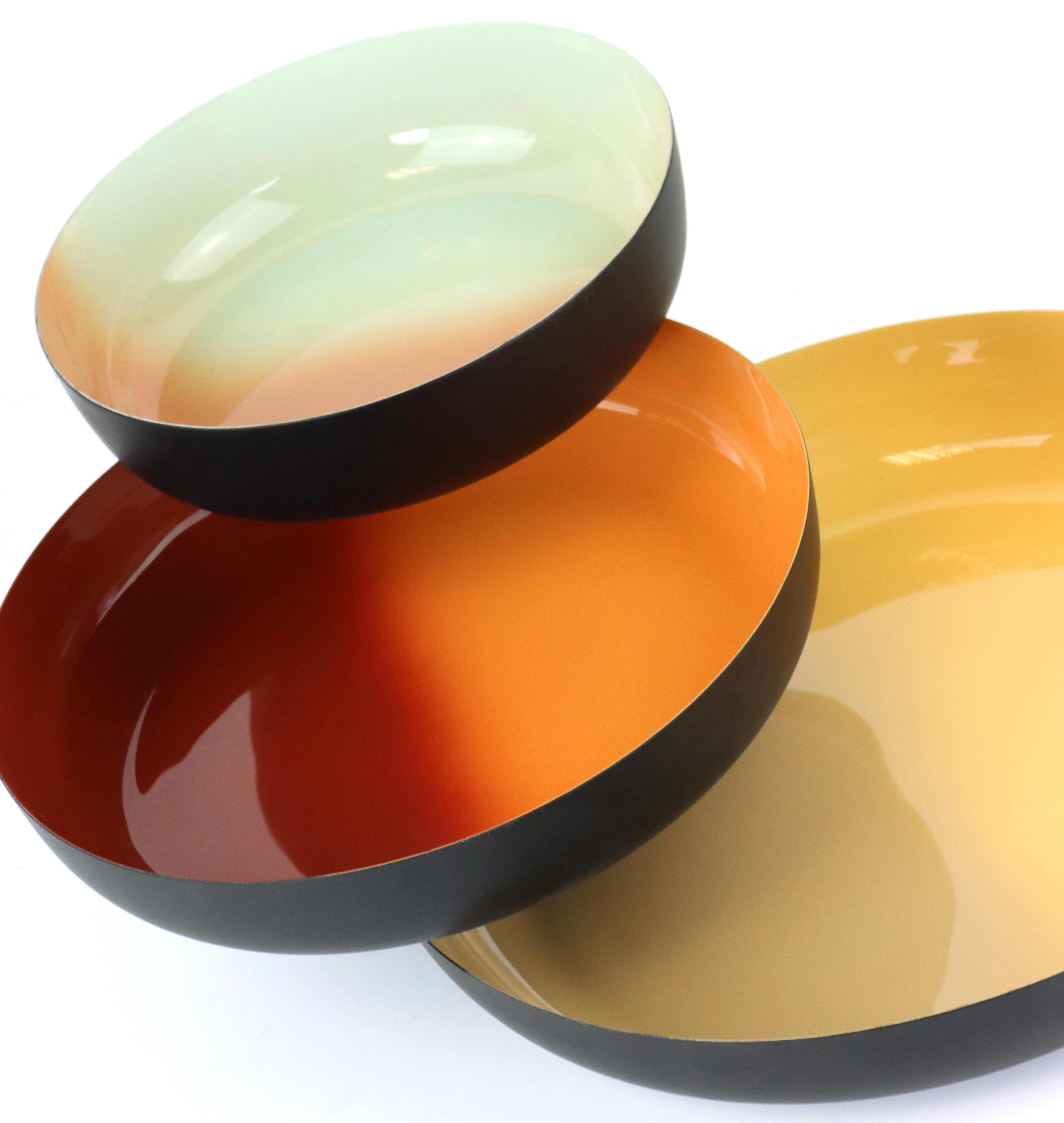Hergestellt aus massivem, emailliertem Eisen garantieren die Schalen nicht nur Langlebigkeit, sondern auch einfache Pflege. Ob als dekoratives Highlight auf dem Esstisch, als stilvolle Obstschalen oder zur Aufbewahrung kleinerer Alltagsgegenstände – die "AMBER MUSE"-Schalen sind vielseitig einsetzbar. Mit Durchmessern von 25 cm, 20 cm und 16 cm bieten sie flexible Nutzungsmöglichkeiten für unterschiedlichste Bedürfnisse und Anwendungsbereiche im Haushalt oder Büro.