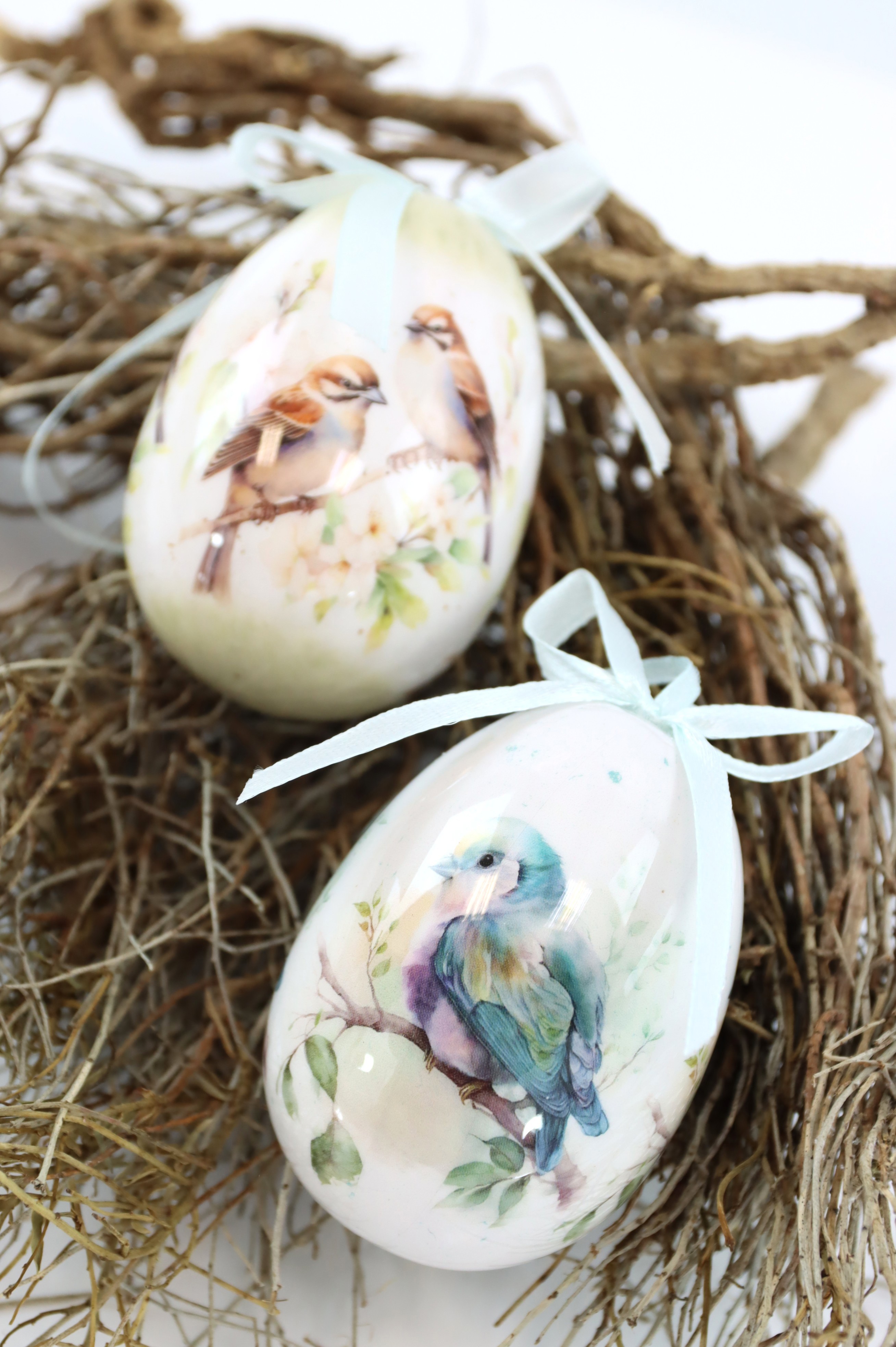 Unser sechsteiliges Set von Hängeneiern besticht durch ihr nostalgisches Vogelmotiv und sorgt für einen Hauch von Vintage in Ihrer Osterkollektion. Jedes Ei, gefertigt aus hochwertigem Kunststoff, misst ca. 7,5 cm und überzeugt durch seine feine Verarbeitung und die zarten Details. Die sanften Pastellfarben verströmen eine ruhige Eleganz, die zu der festlichen Osterstimmung beiträgt.