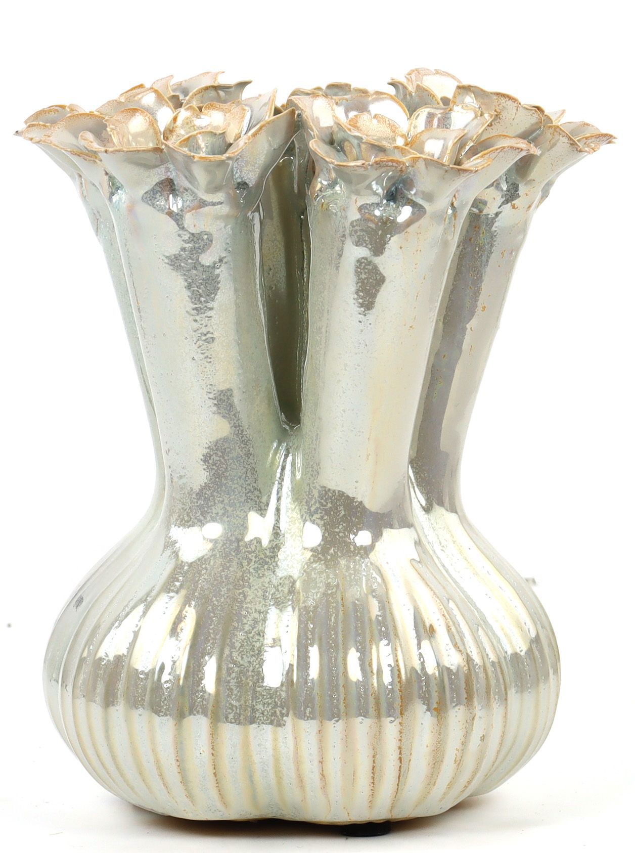 Bringen Sie mit dem Vasenobjekt "SIENNA" in Silber einen Hauch von Eleganz und modernen Charme in Ihr stationäres Einzelhandelsgeschäft. Dieses exquisite Vasenobjekt besticht durch seine sorgfältig verarbeitete Keramik in einem ansprechenden Silber-Finish und passt perfekt in jedes zeitgenössische Wohn- oder Lifestyle-Setting. Mit einer Höhe von ca. 18,5 cm fügt es sich nahtlos in verschiedene Dekorationsstile ein und fungiert gleichzeitig als Eyecatcher, der garantiert die Blicke Ihrer Kunden auf sich zieht.