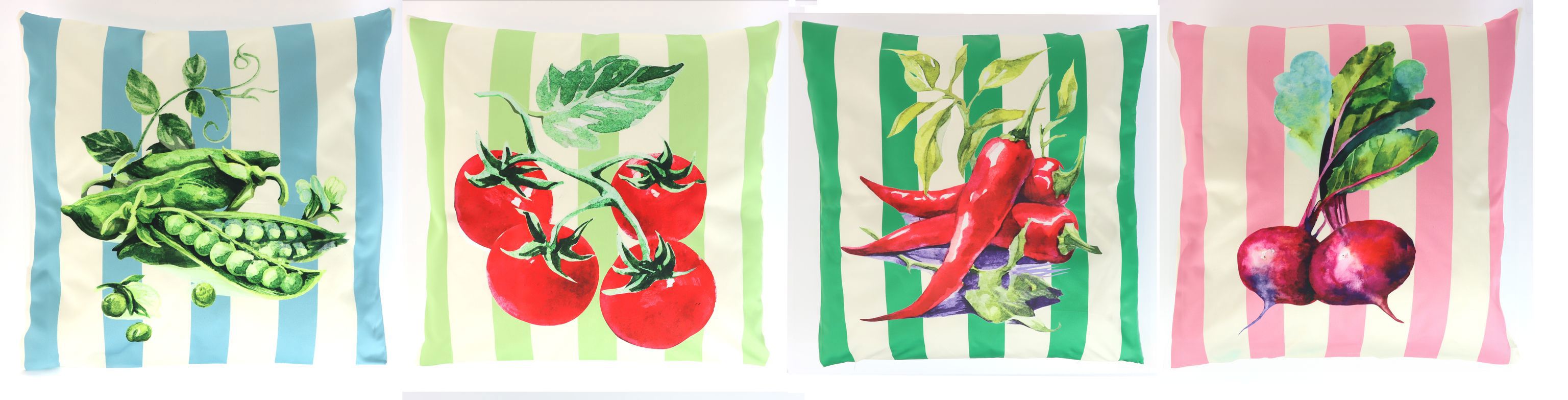 - Set aus vier Kissenhüllen mit bunten Gemüse-Motiven