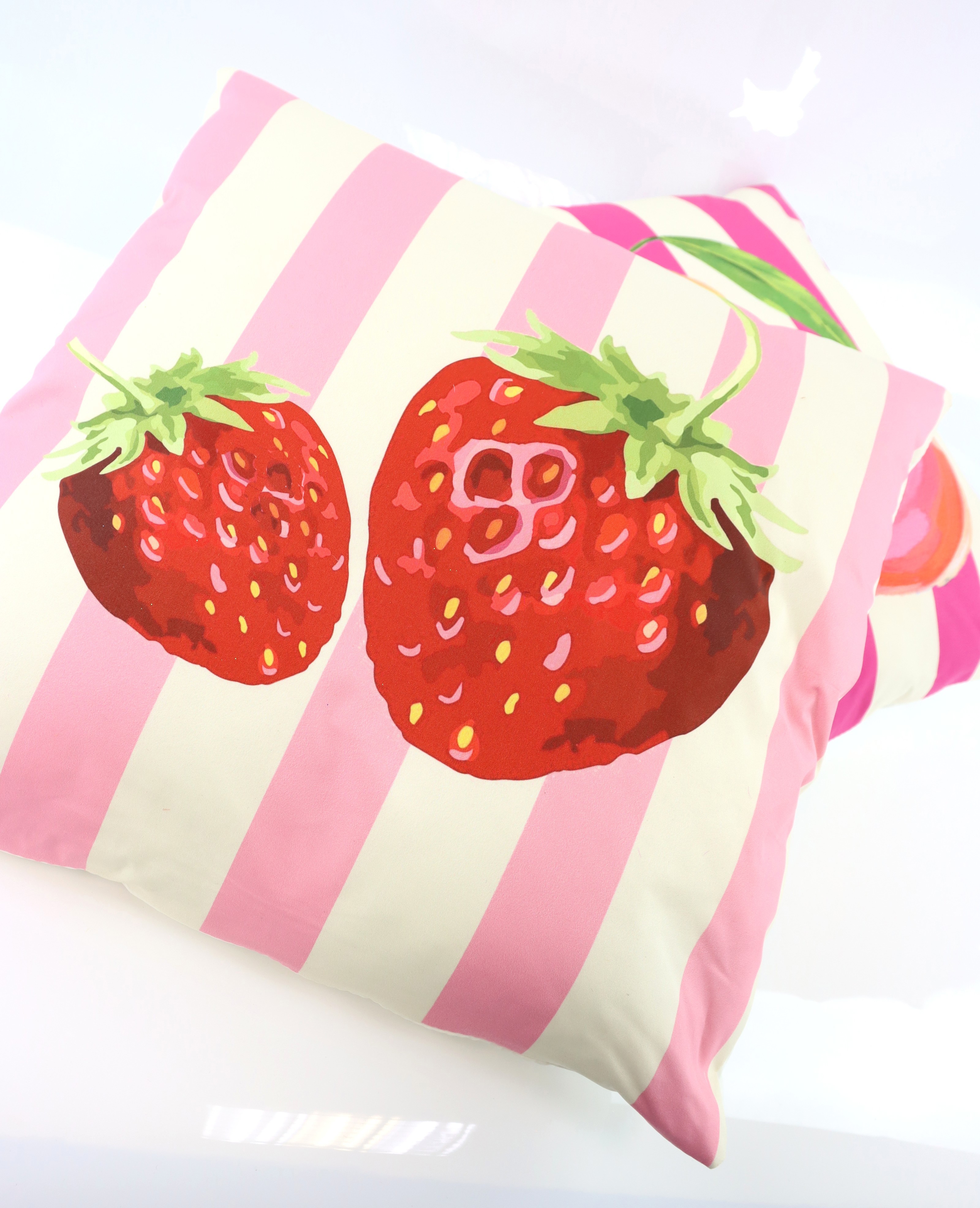 SEO-Zentralbegriffe wie *Kissenbezüge Frühjahr/Sommer*, *dekorative Kissenhüllen*, *Motiv Obst*, und *Heimtextilien Einzelhandel* machen diese Produktbeschreibung suchmaschinenoptimiert. Diese Keywords helfen Ihrem Online-Shop, besser gefunden zu werden und mehr potentielle Kunden anzuziehen, die ihre Inneneinrichtung für die neue Saison aufwerten möchten.