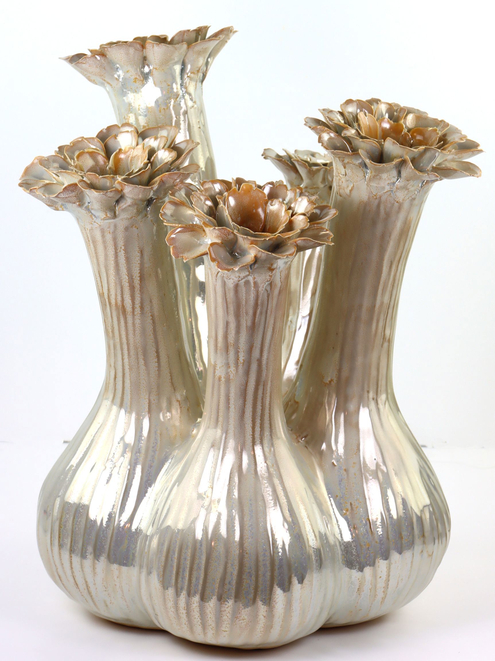 Das silberne Finish des Vasenobjekts verleiht jedem Raum eine gewisse Eleganz und lässt sich leicht mit anderen Einrichtungselementen kombinieren. Ob als zentrales Dekorationsstück auf einem Beistelltisch oder als stilvolle Ergänzung zu anderen Wohnaccessoires – "SIENNA" zieht alle Blicke auf sich und spricht Kunden an, die auf der Suche nach etwas Besonderem sind.